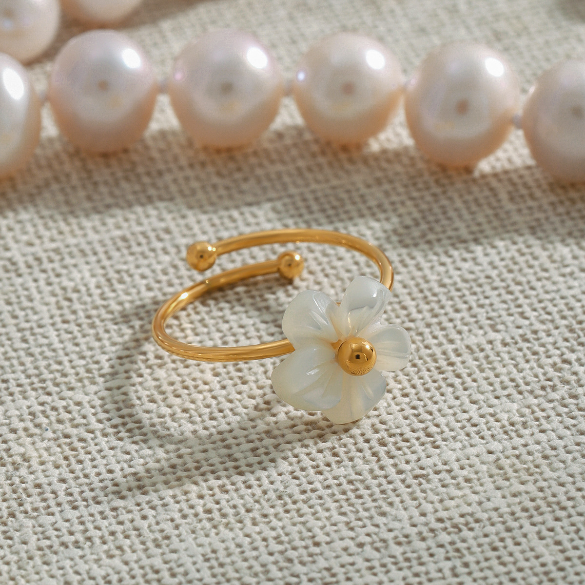 Bague en acier inoxydable, Acier inoxydable 304, avec coquille, Placage, bijoux de mode & pour femme, doré, Vendu par PC