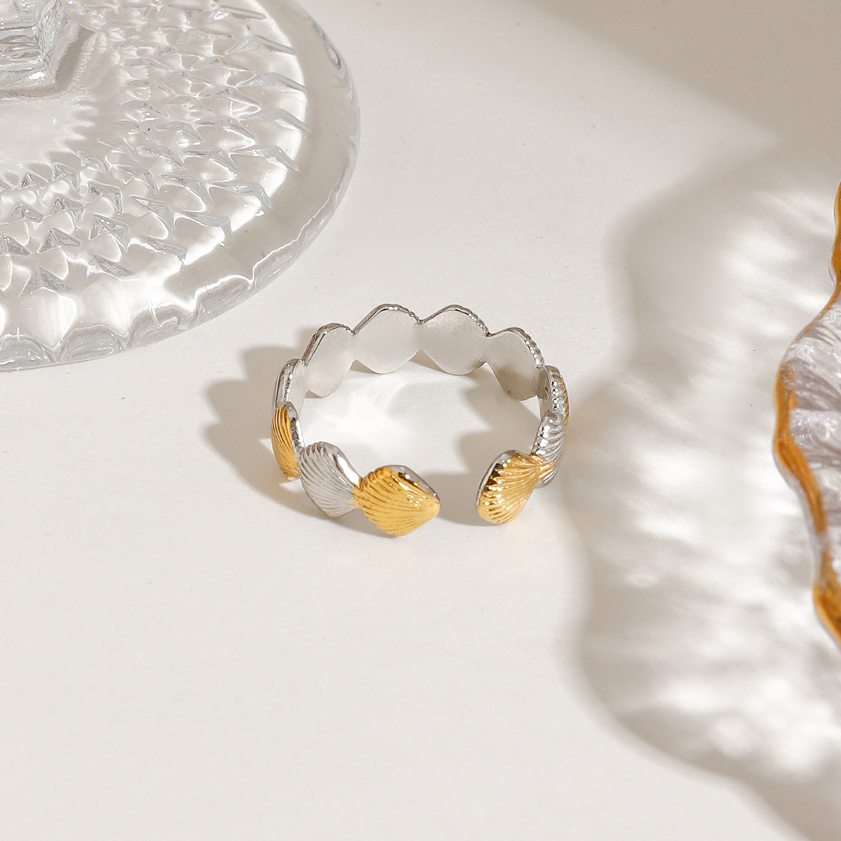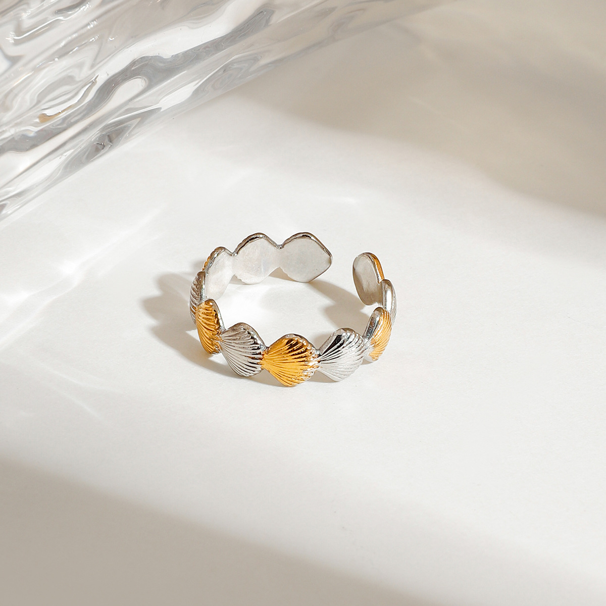 Bague en acier inoxydable, Acier inoxydable 304, coquille, Placage, bijoux de mode & pour femme & deux tons, Vendu par PC
