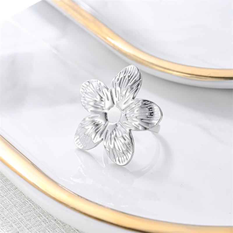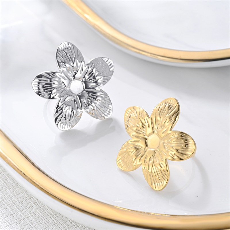 Bague en acier inoxydable, Acier inoxydable 304, fleur, Placage, bijoux de mode & pour femme & creux, plus de couleurs à choisir, Vendu par PC