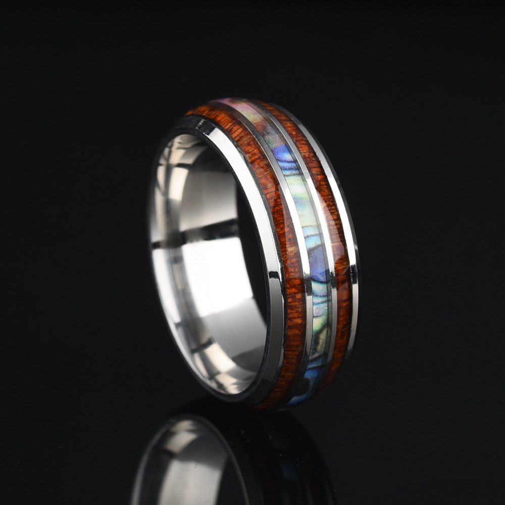 Bague en acier inoxydable, 201 acier inoxydable, avec coquille, Placage, normes différentes pour le choix & pour homme & émail, couleur originale, Vendu par PC
