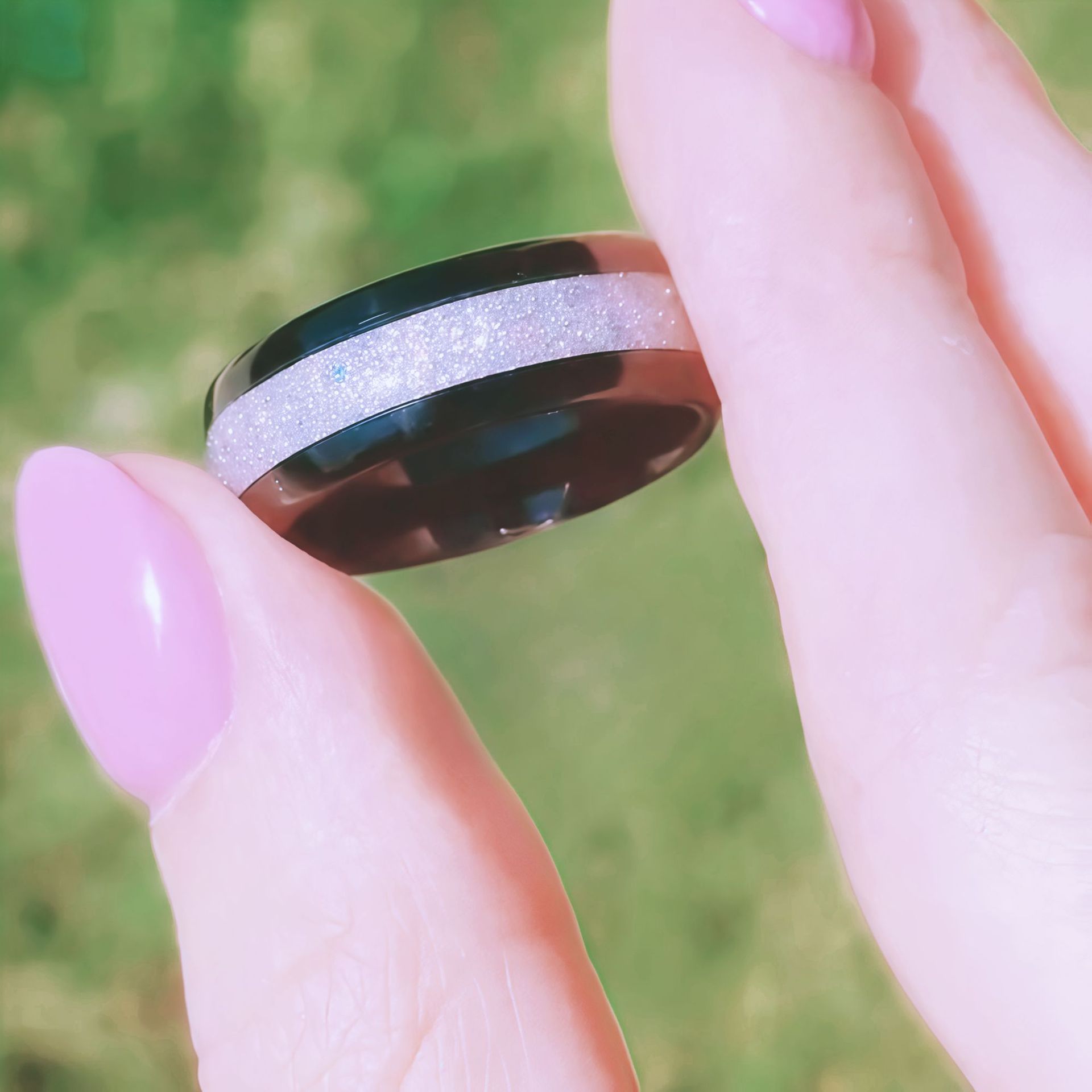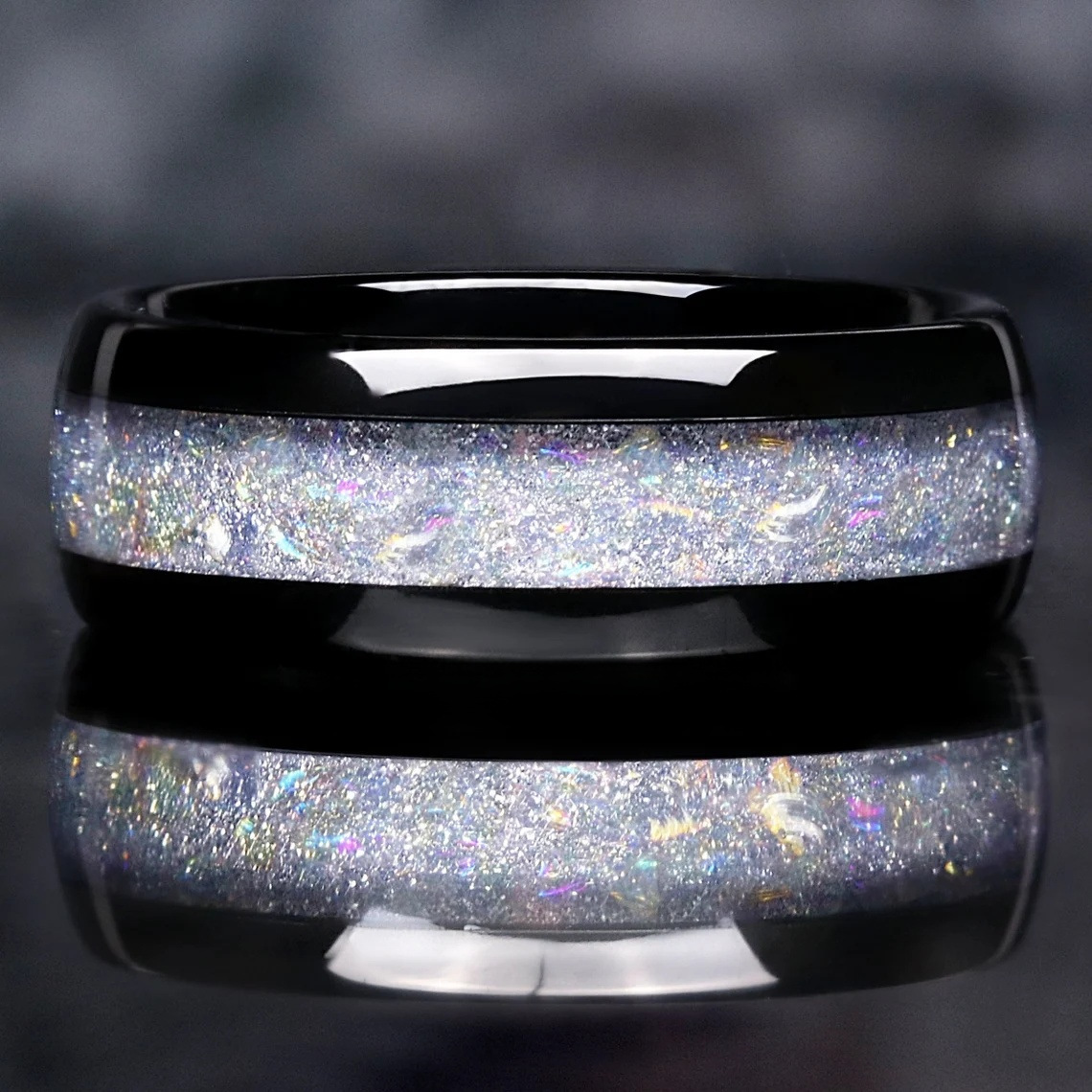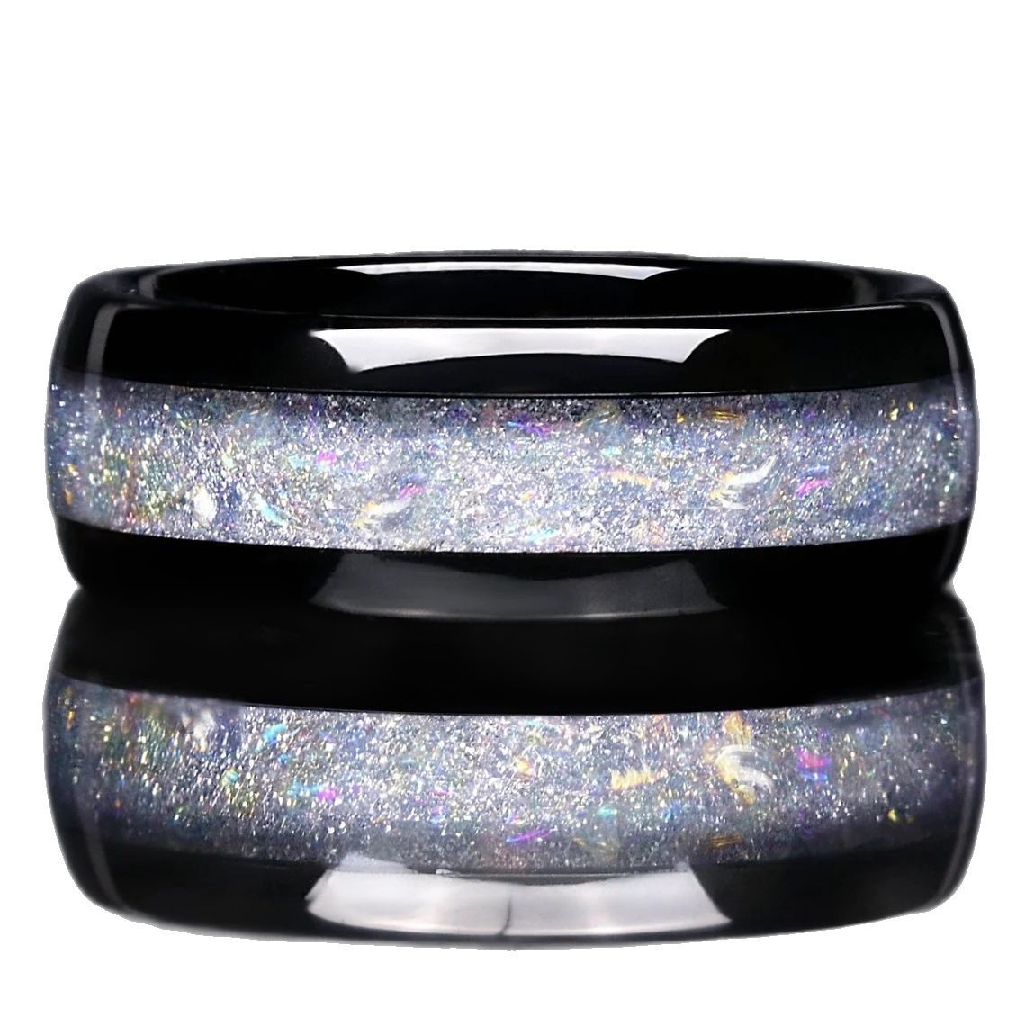 Bague en acier inoxydable, 201 acier inoxydable, Placage, normes différentes pour le choix & pour homme & autocollant époxyde & décalque, noire, wide:8mm, Vendu par PC
