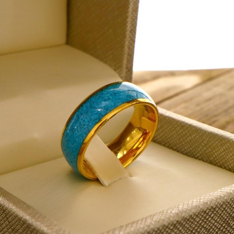 Bague en acier inoxydable, 201 acier inoxydable, Placage, normes différentes pour le choix & pour homme & autocollant époxyde, doré, Vendu par PC