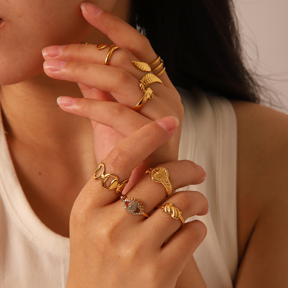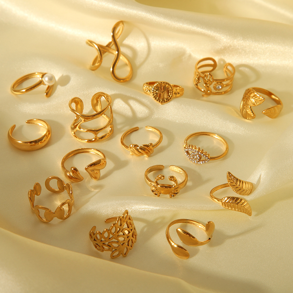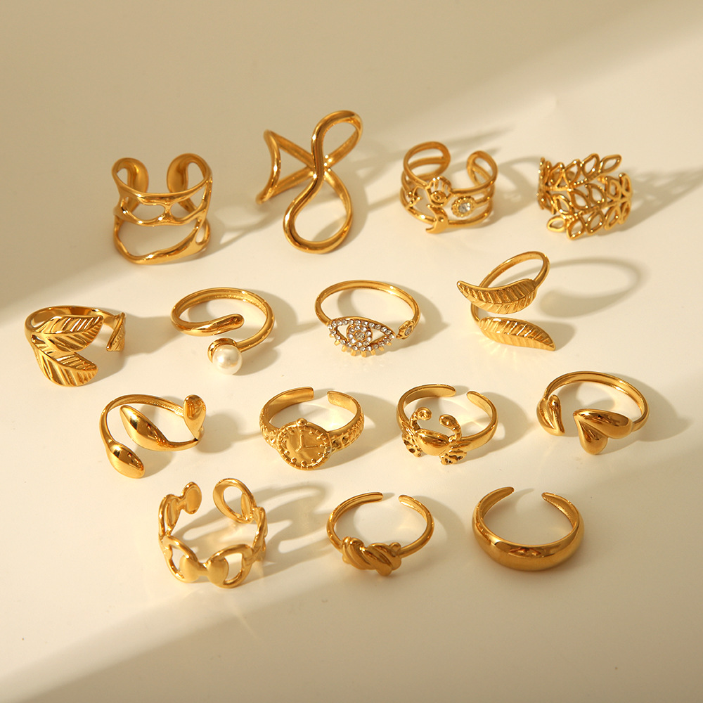 Bague en acier inoxydable, Acier inoxydable 304, Placage, styles différents pour le choix & pour femme & creux, doré, Vendu par PC