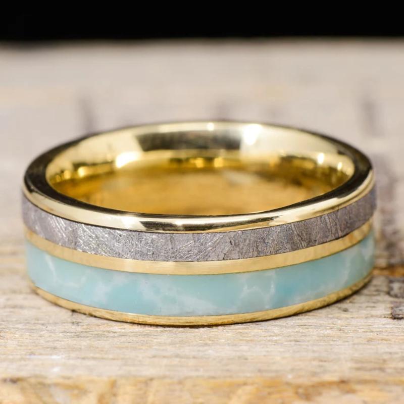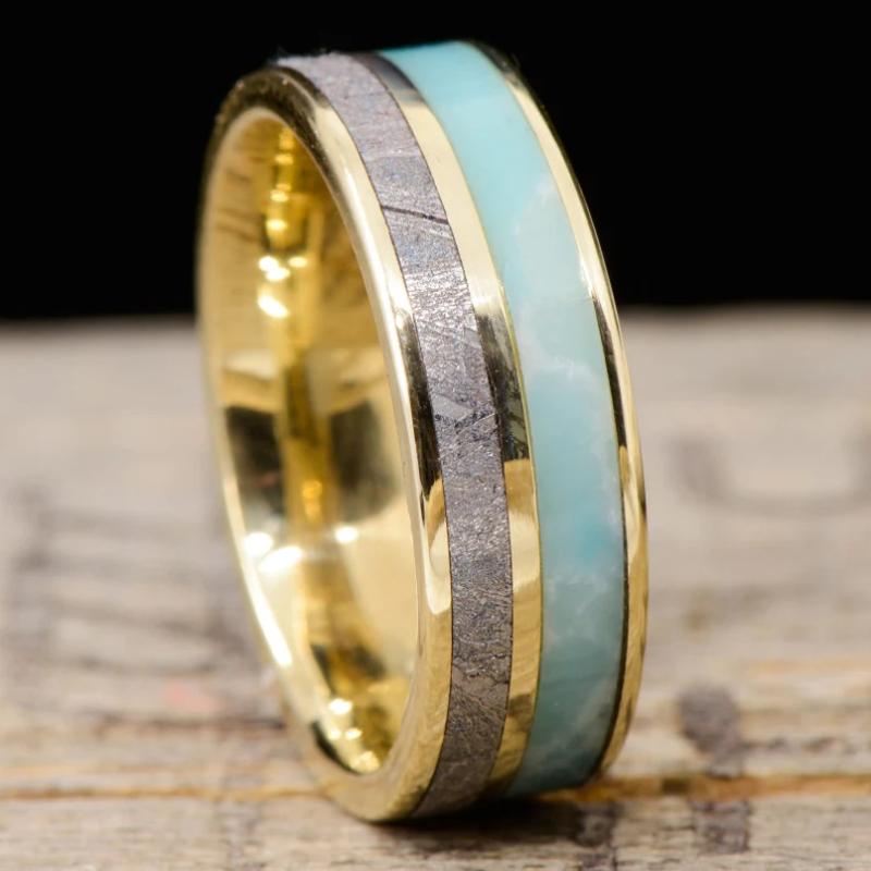 Bague en acier inoxydable, 201 acier inoxydable, Placage, normes différentes pour le choix & pour homme & autocollant époxyde, doré, Vendu par PC