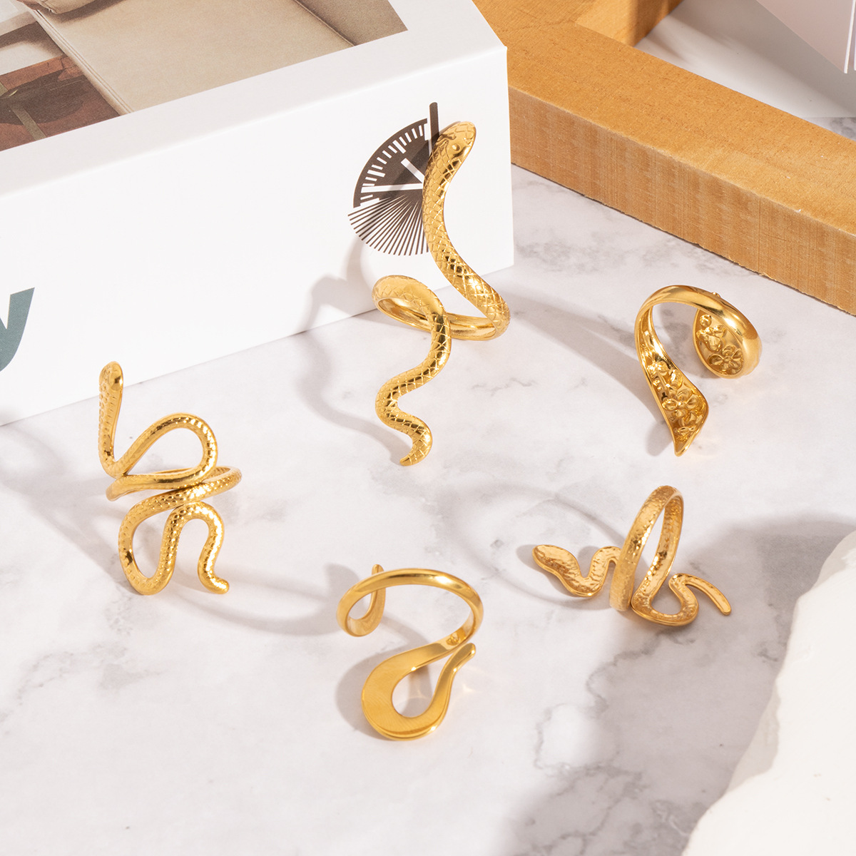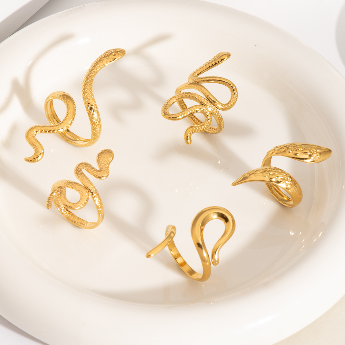 Bague en acier inoxydable, Acier inoxydable 304, serpent, Placage ionique sous vide, styles différents pour le choix & pour femme & creux, doré, Vendu par PC