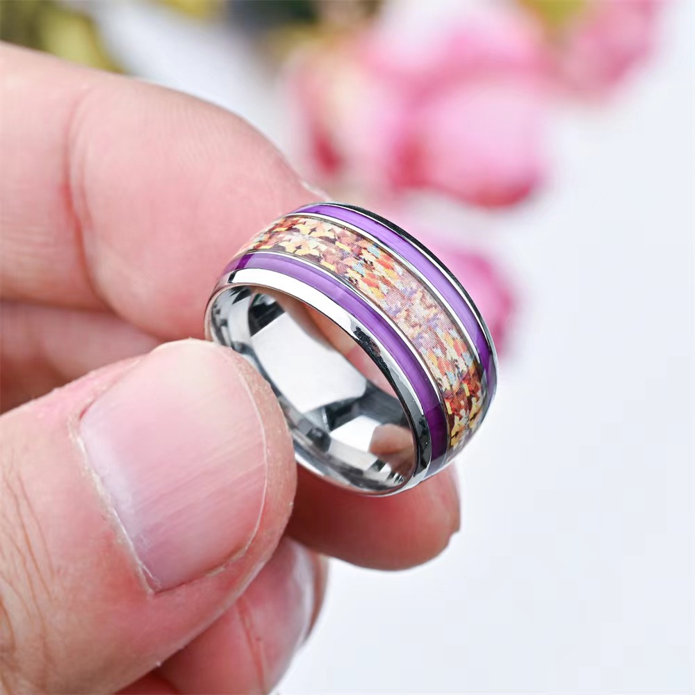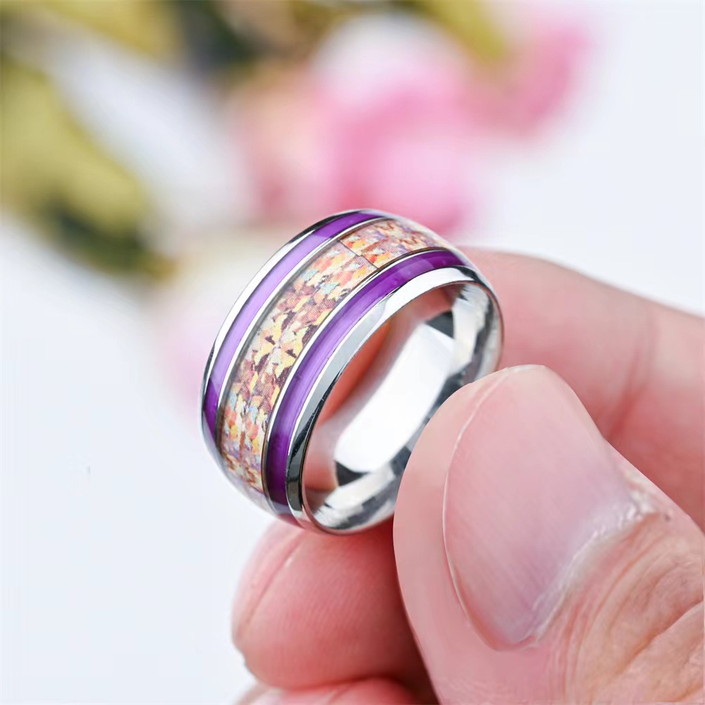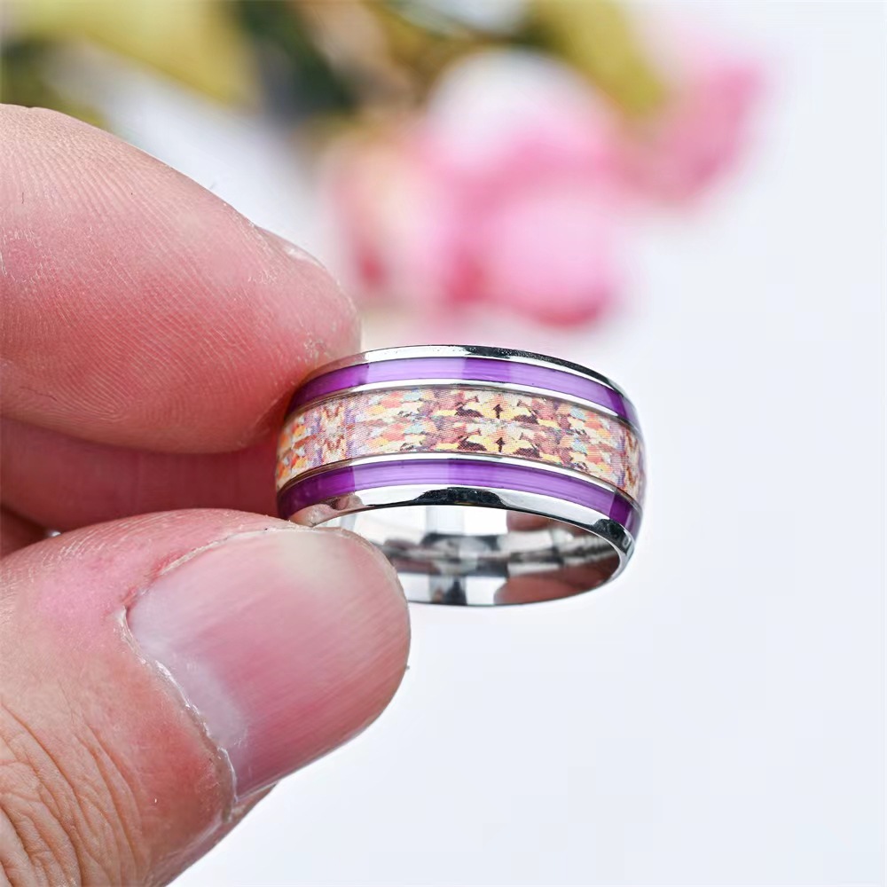 Bague en acier inoxydable, 201 acier inoxydable, Placage, normes différentes pour le choix & pour homme & autocollant époxyde, violet, wide:10mm, Vendu par PC