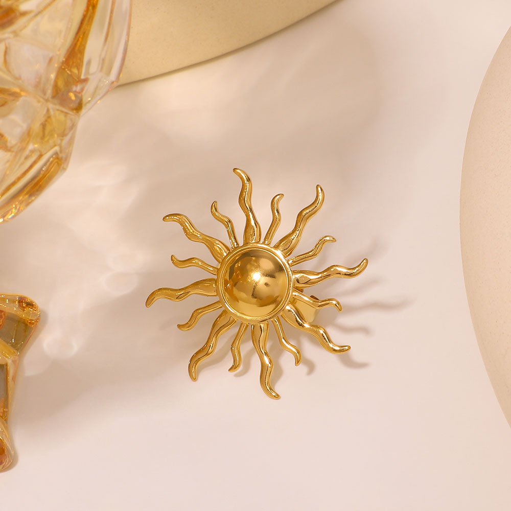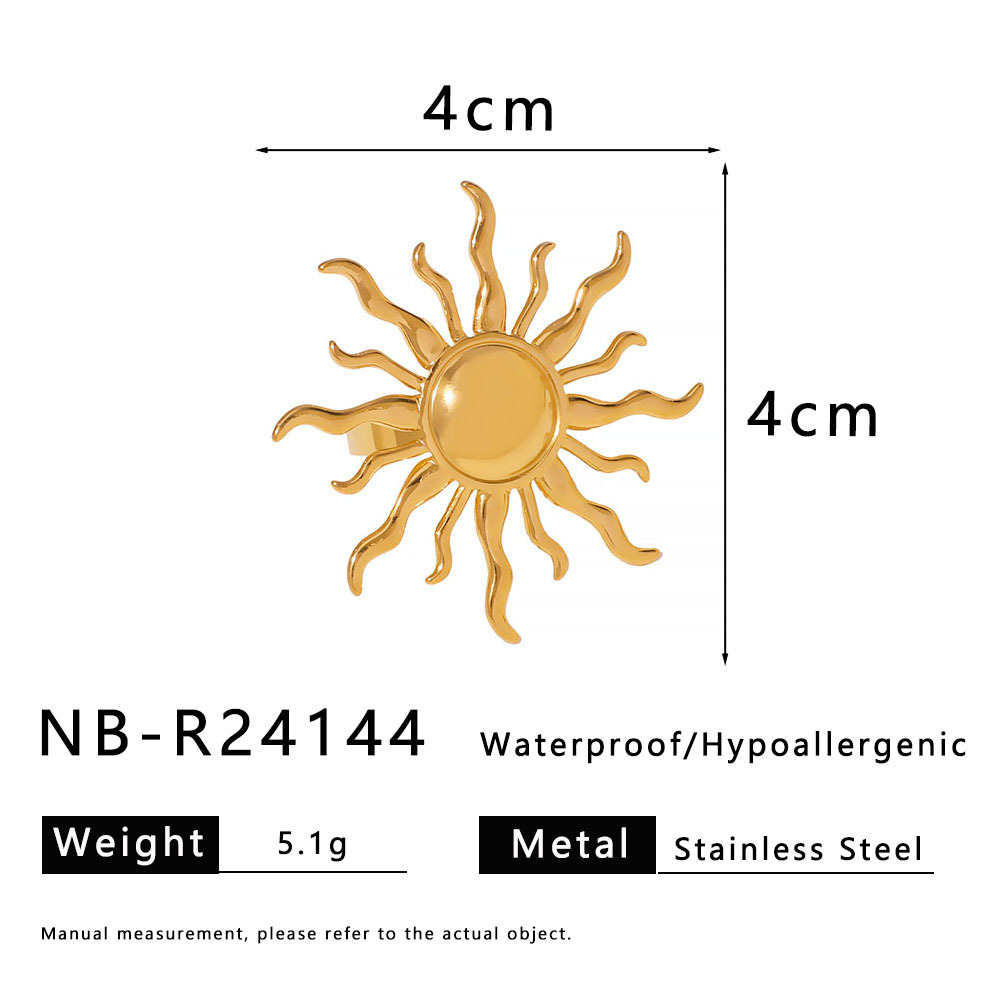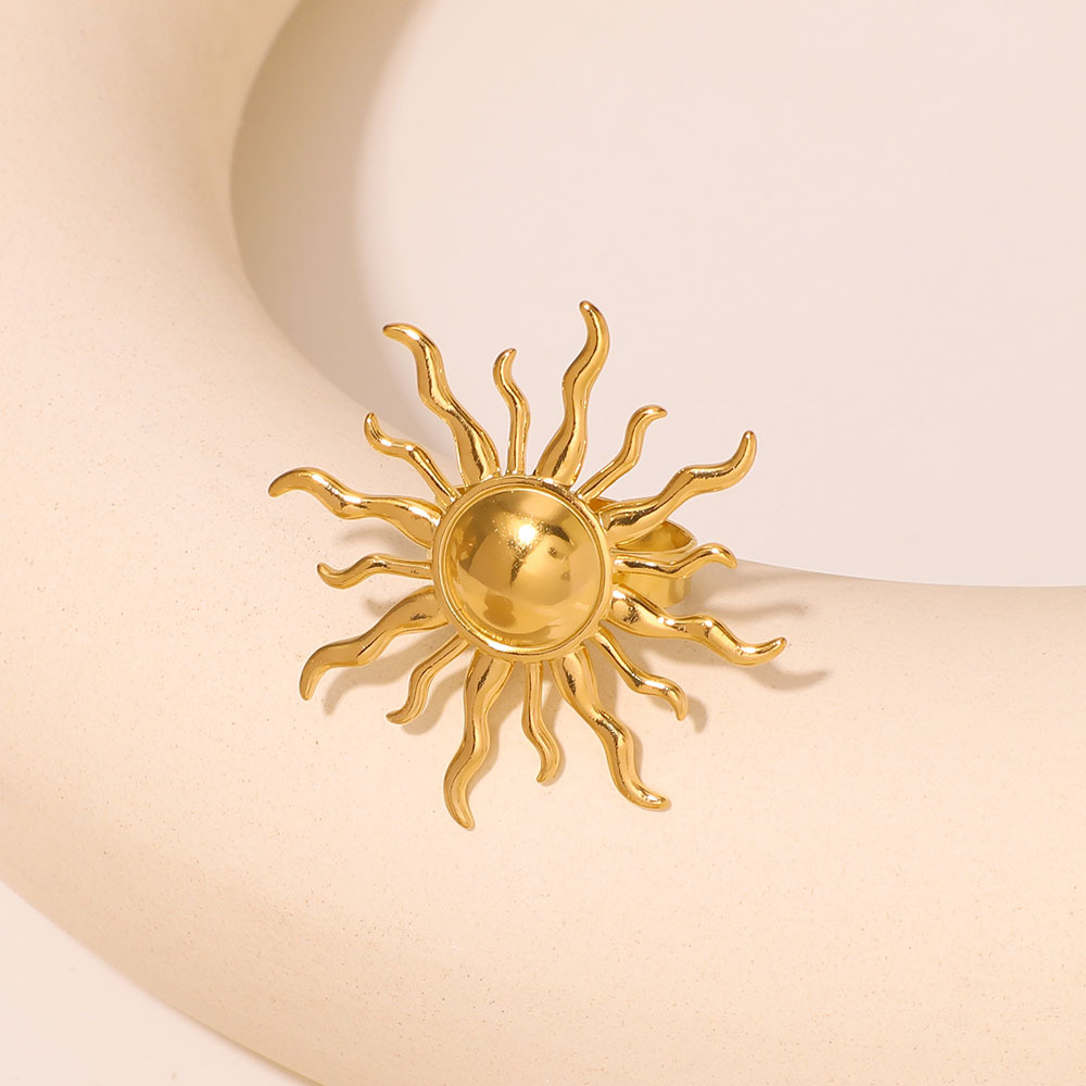 Bague en acier inoxydable, Acier inoxydable 304, soleil, Placage de couleur d'or, bijoux de mode, doré, Vendu par PC