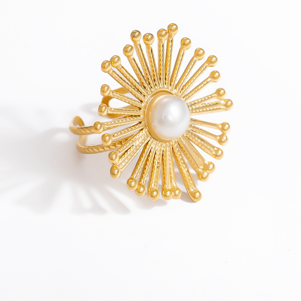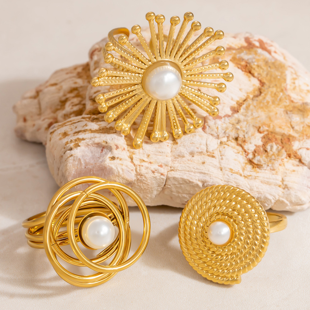 Bague en acier inoxydable, Acier inoxydable 304, avec perle de plastique, fraise, Placage de couleur d'or, bijoux de mode & modèles différents pour le choix, doré, Vendu par PC