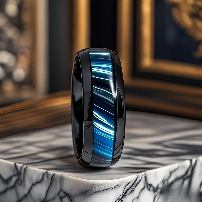 Bague en acier inoxydable, 201 acier inoxydable, goutté d'époxy, bijoux de mode & normes différentes pour le choix & pour homme, noire, wide:8mm, Vendu par PC