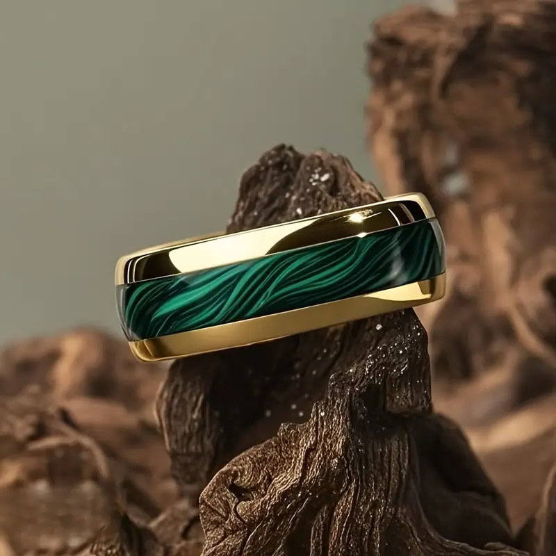 Bague en acier inoxydable, 201 acier inoxydable, Placage, normes différentes pour le choix & pour homme & autocollant époxyde, doré, wide:8mm, Vendu par PC