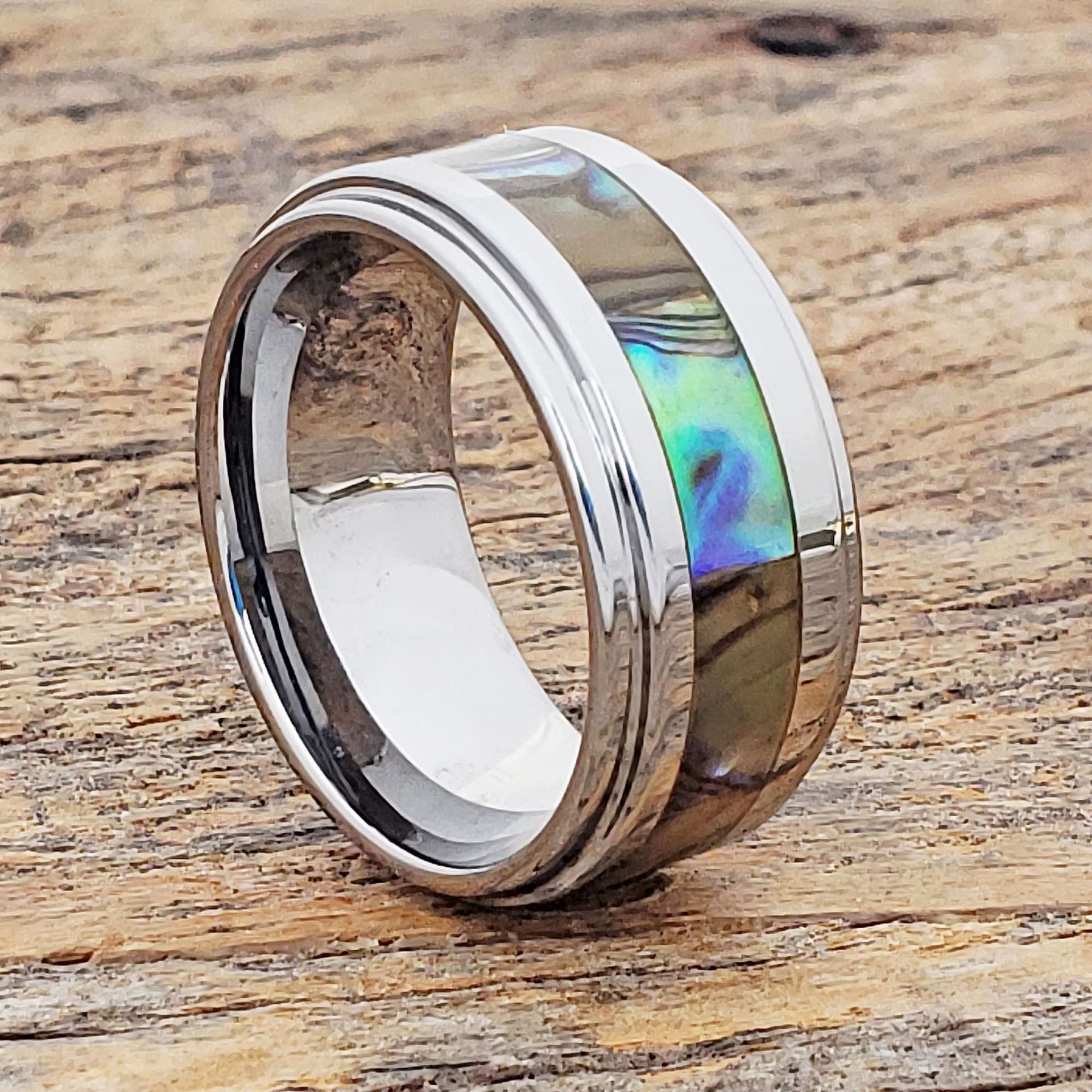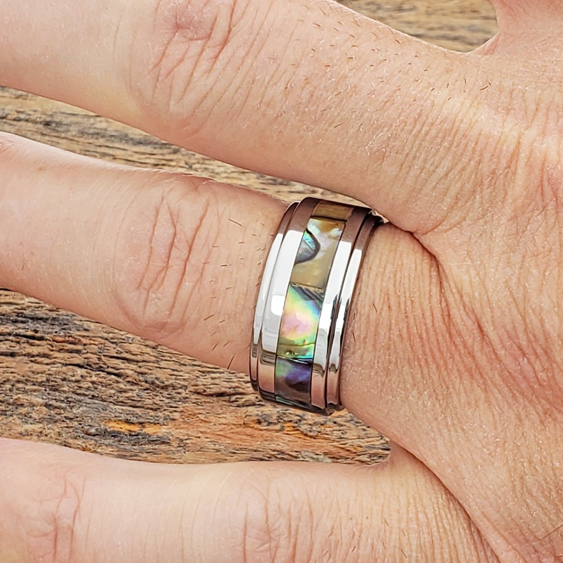 Bague en acier inoxydable, 201 acier inoxydable, avec coquille, Placage, bijoux de mode & normes différentes pour le choix & pour homme, argent, Vendu par PC