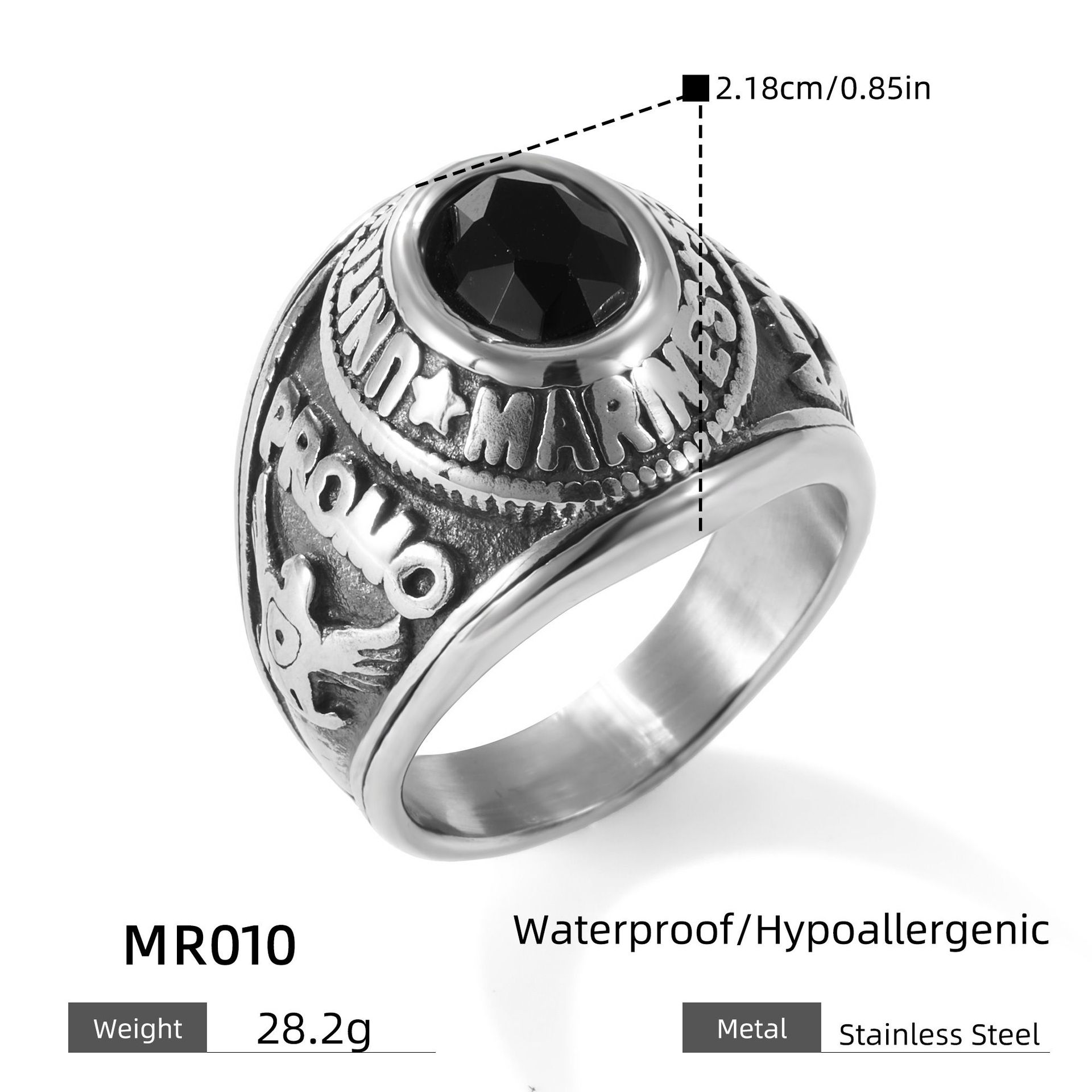Bague en acier inoxydable, couleur originale - .5-11.5 îte, Vendu par boîte