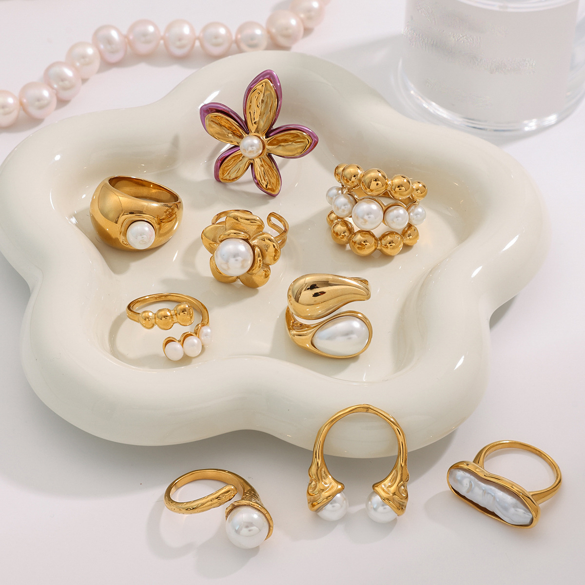 Bague en acier inoxydable, Acier inoxydable 304, avec perle de plastique, Placage, bijoux de mode & styles différents pour le choix & pour femme, doré, Vendu par PC
