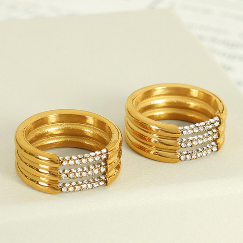 Bague en acier inoxydable , pour femme & avec strass, doré, 4mm îte, Vendu par boîte