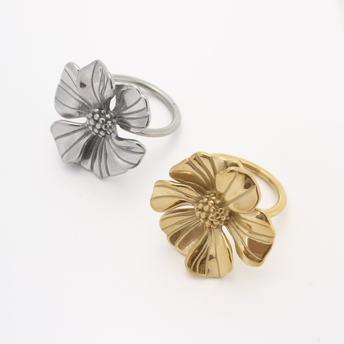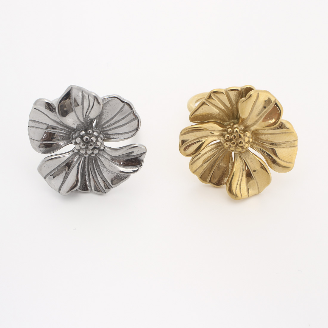 Bague en acier inoxydable, Acier inoxydable 304, fleur, Placage ionique sous vide, bijoux de mode & pour femme, plus de couleurs à choisir, 25x25x7mm, Vendu par PC