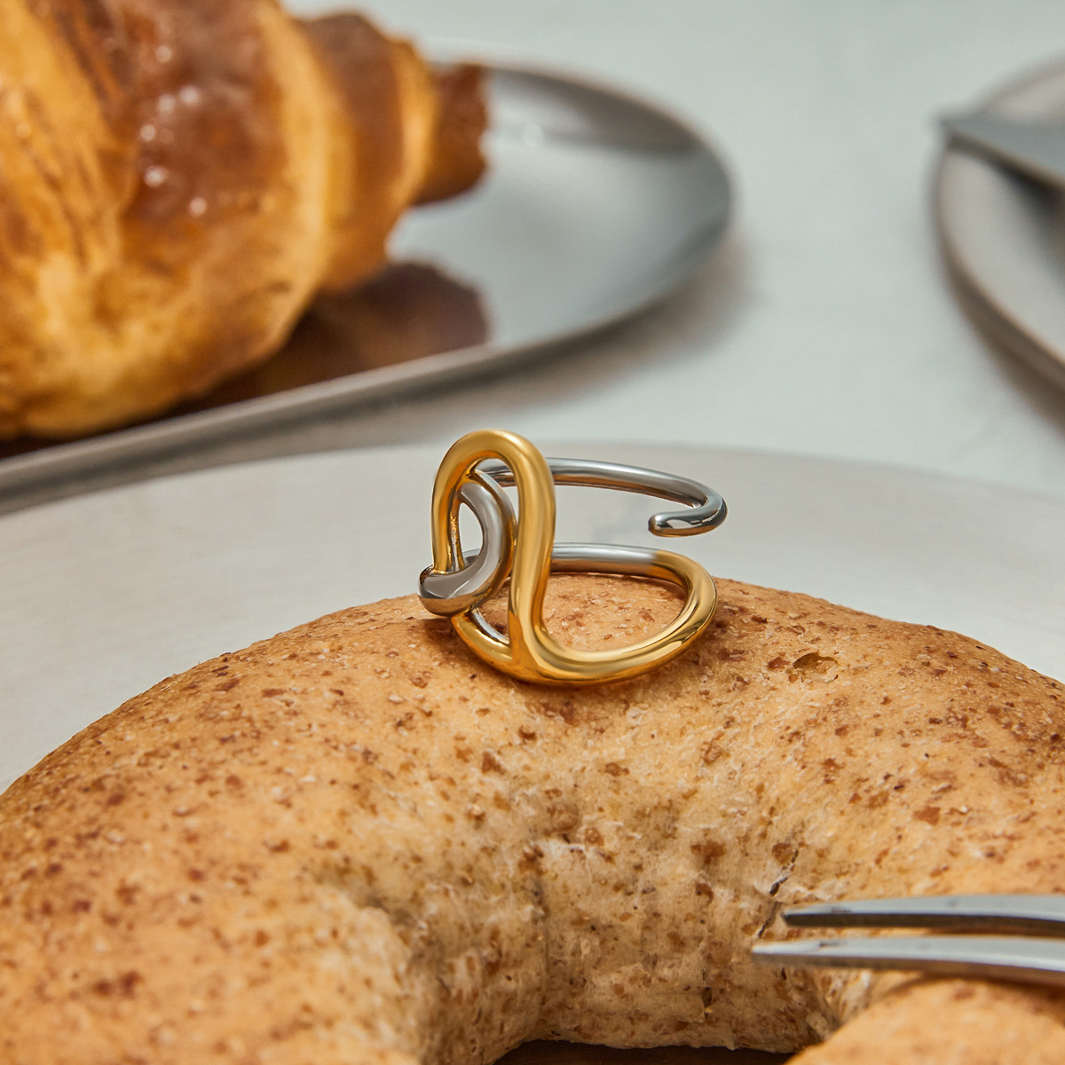 Bague en acier inoxydable, Acier inoxydable 304, Placage, normes différentes pour le choix & pour femme & deux tons & creux, Vendu par PC