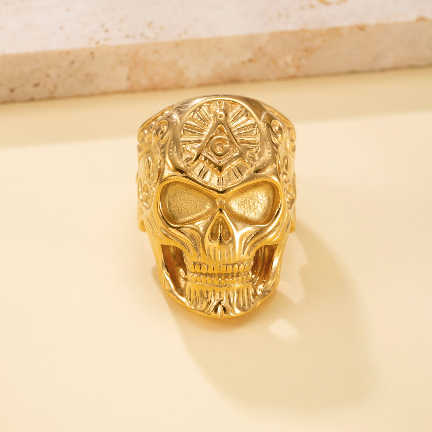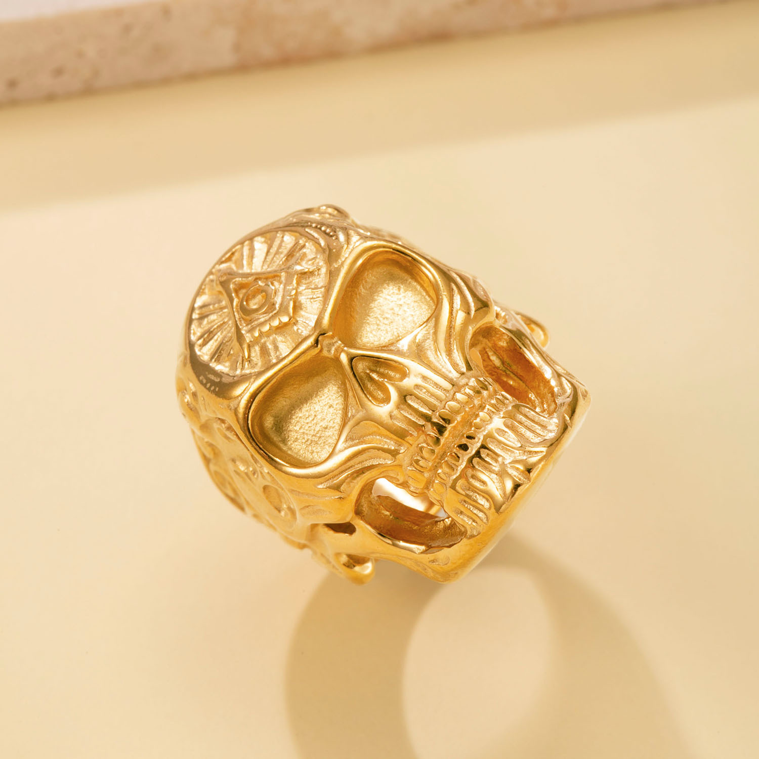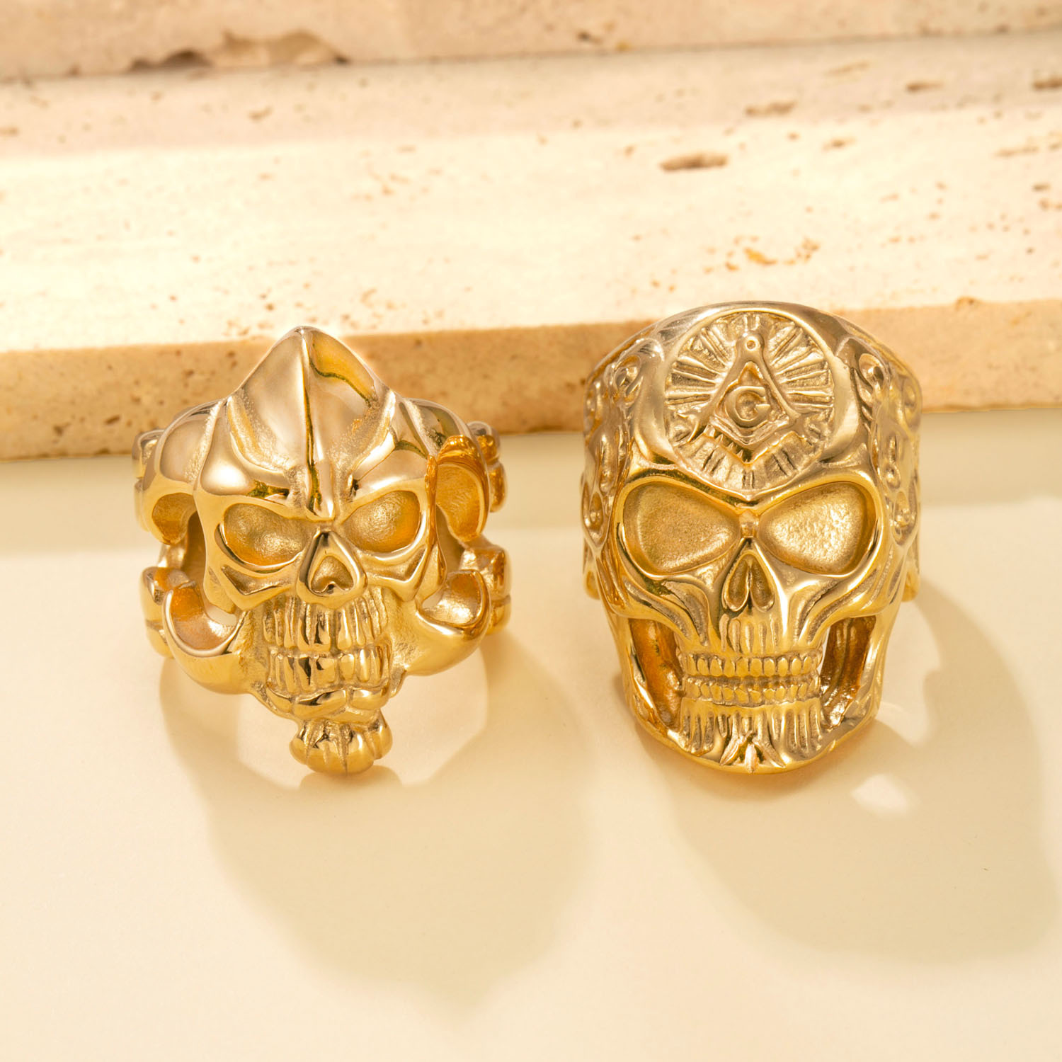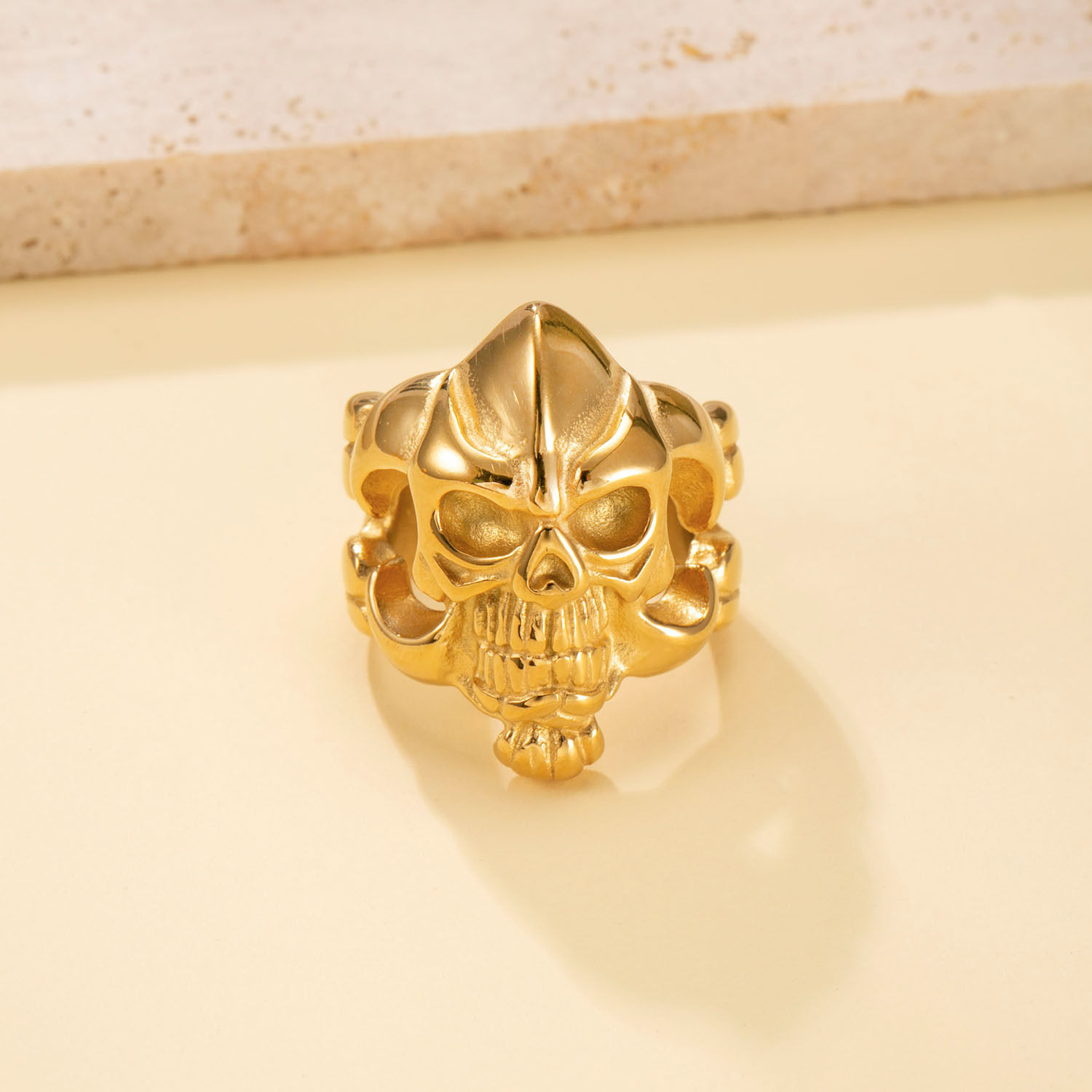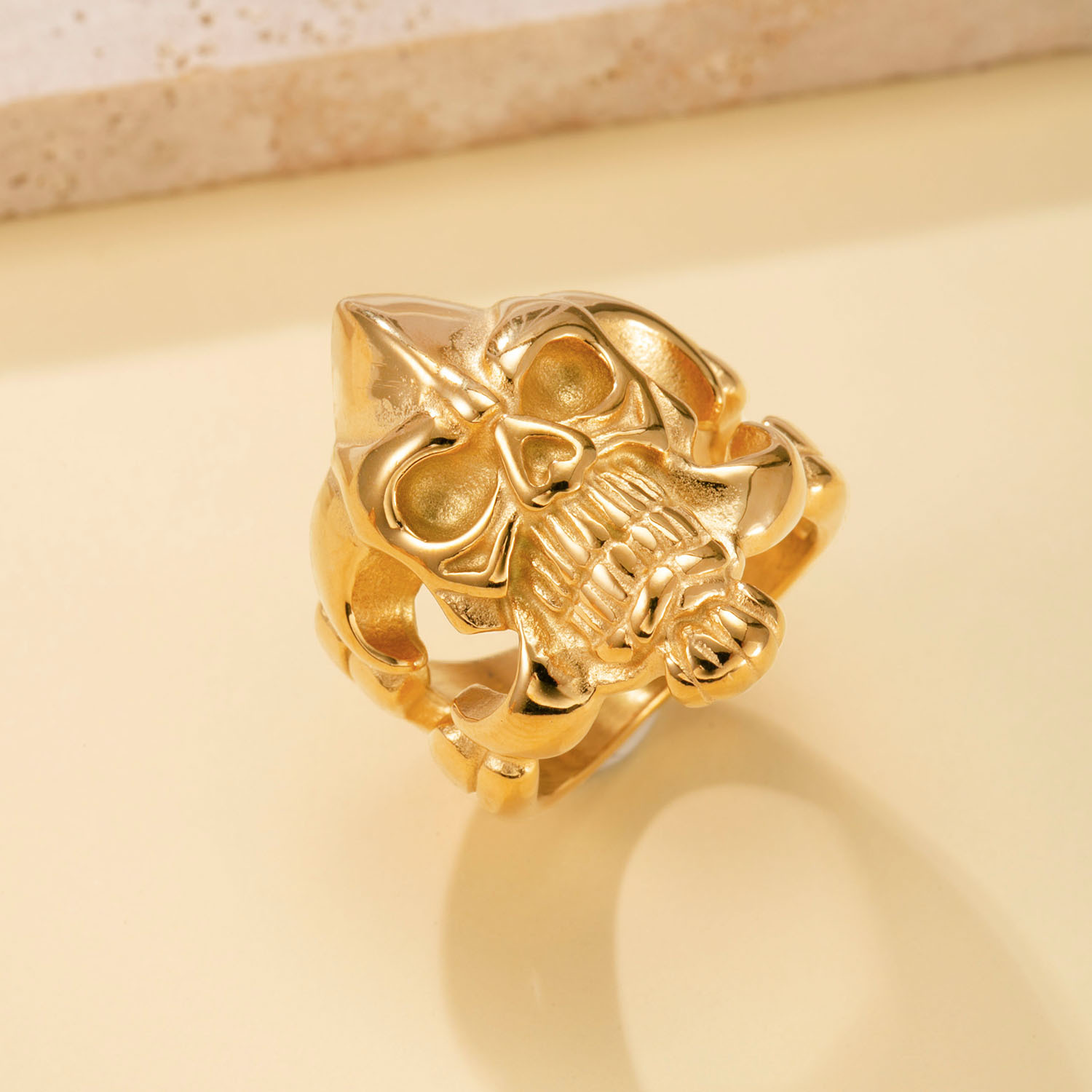 Bague en acier inoxydable, Acier inoxydable 304, crane, Placage, normes différentes pour le choix & styles différents pour le choix & pour homme, doré, Vendu par PC
