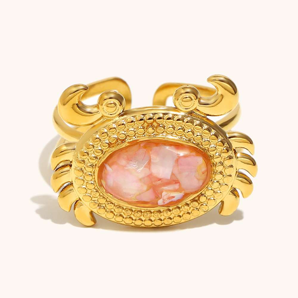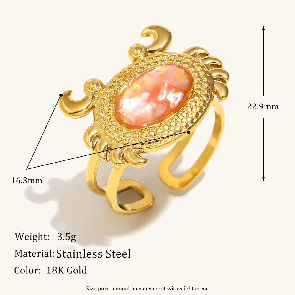 Bague en acier inoxydable, Acier inoxydable 304, avec résine, crabe, Placage de couleur d'or, bijoux de mode, plus de couleurs à choisir, Vendu par PC