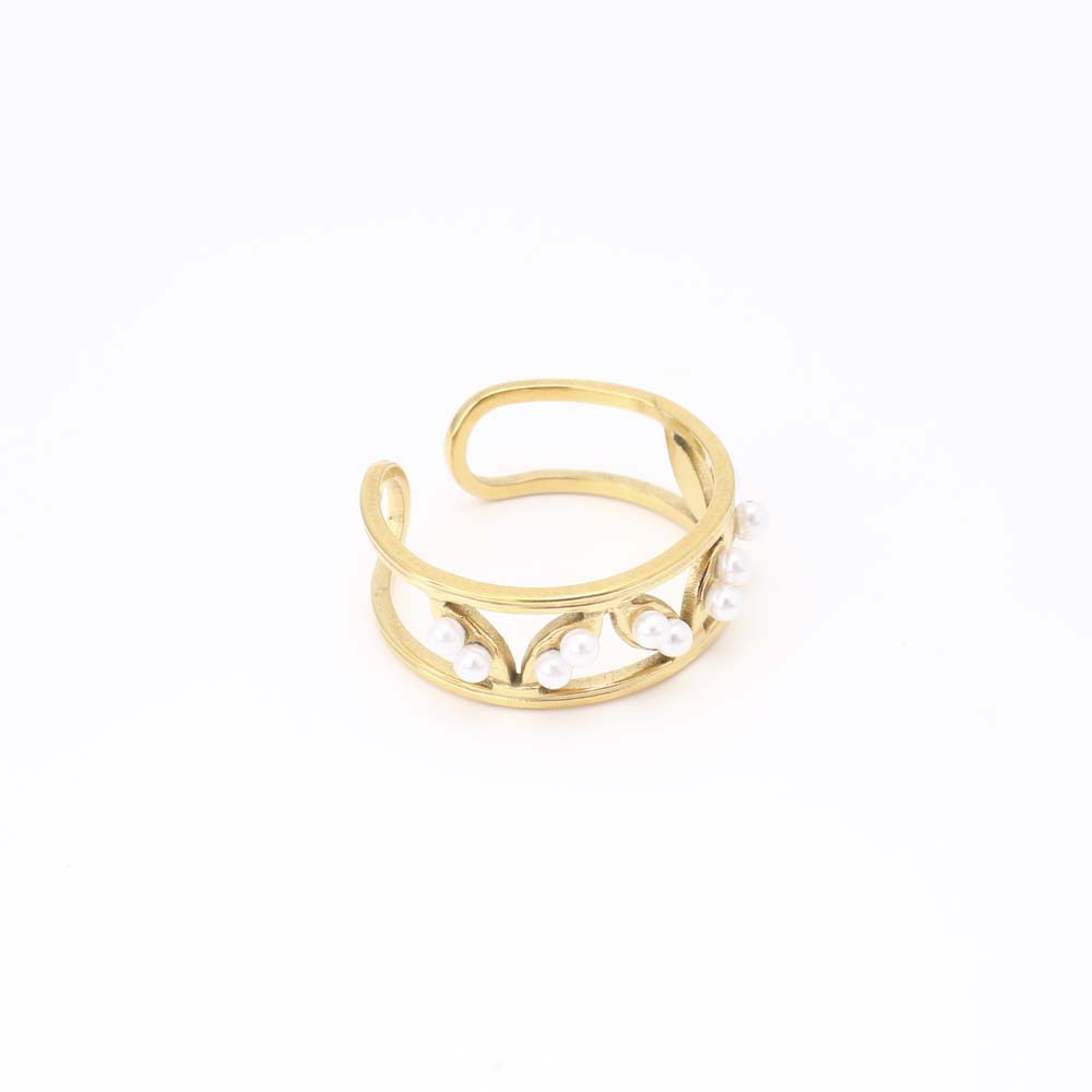 Bague en acier inoxydable, Acier inoxydable 304, avec perle de plastique, bijoux de mode & pour femme, doré, Diamètre intérieur:Environ 20mm, Vendu par PC