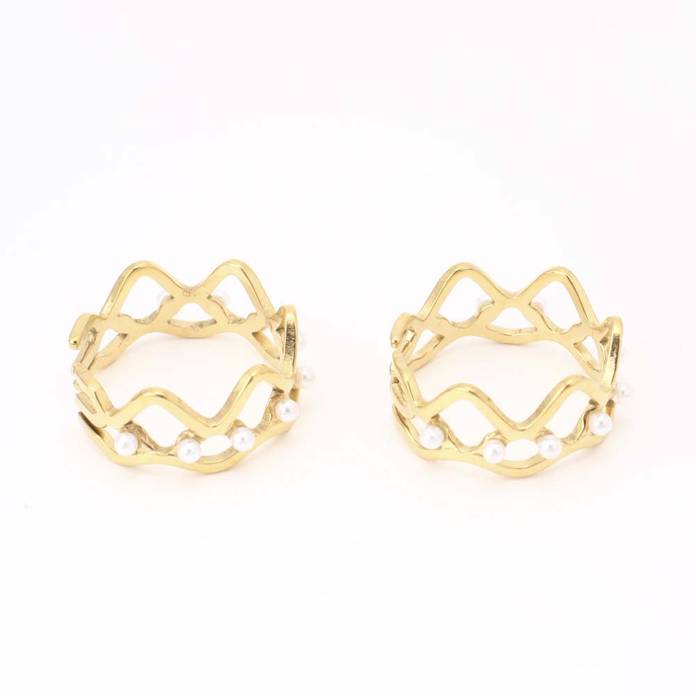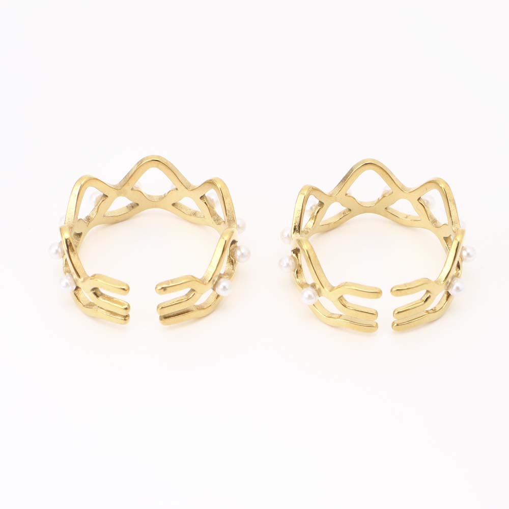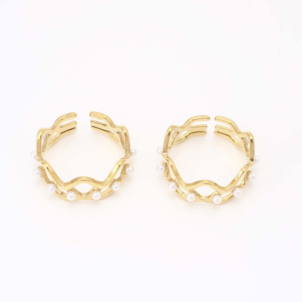 Bague en acier inoxydable, Acier inoxydable 304, avec perle de plastique, bijoux de mode & pour femme & creux, doré, Diamètre intérieur:Environ 16mm, Vendu par PC