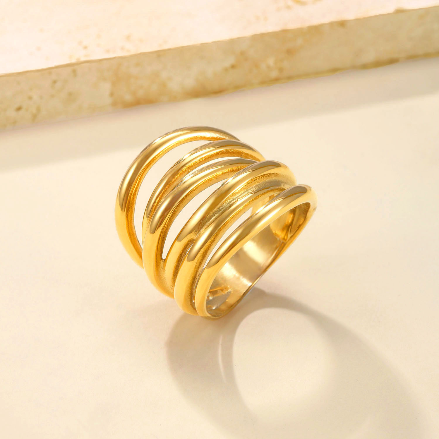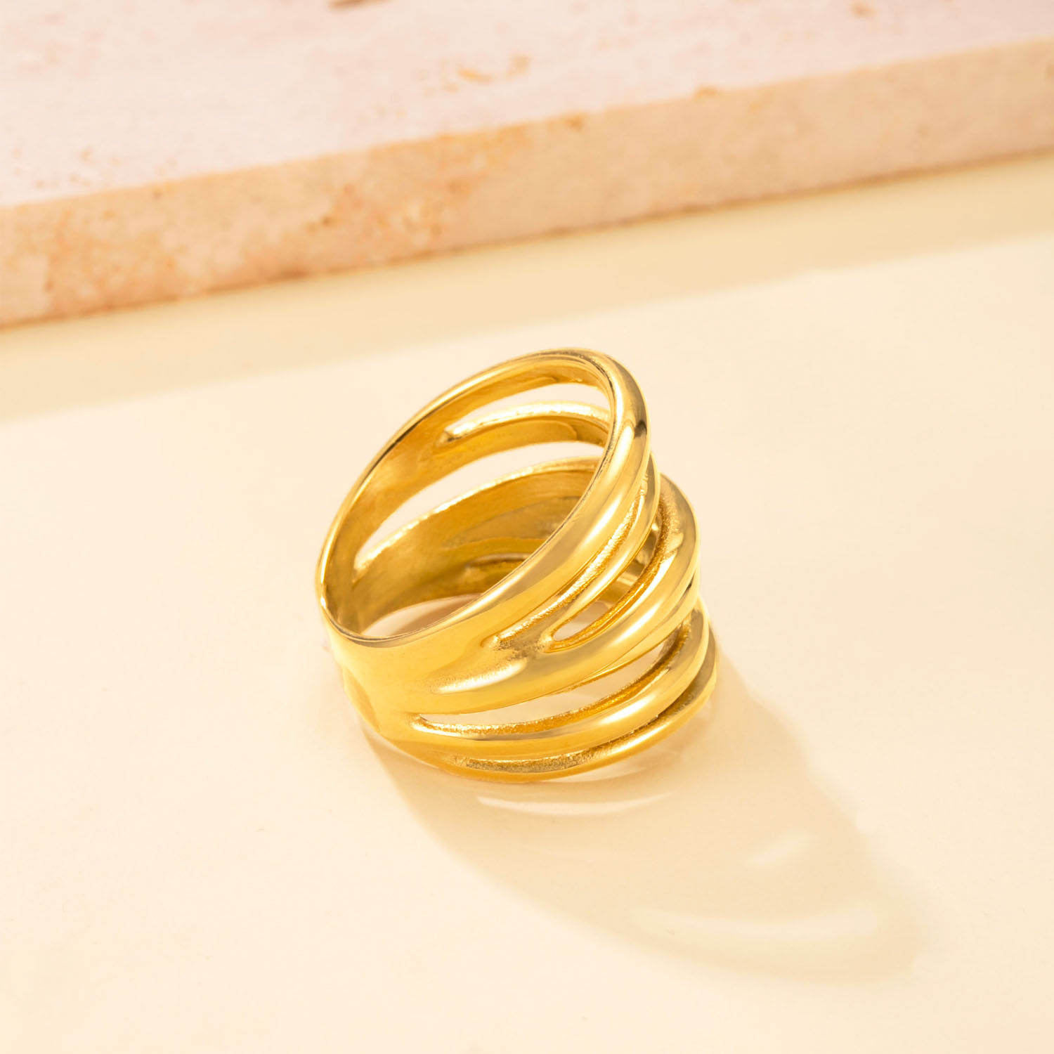 Bague en acier inoxydable, Acier inoxydable 304, Placage, bijoux de mode & pour femme & creux, doré, Taille:9, Vendu par PC