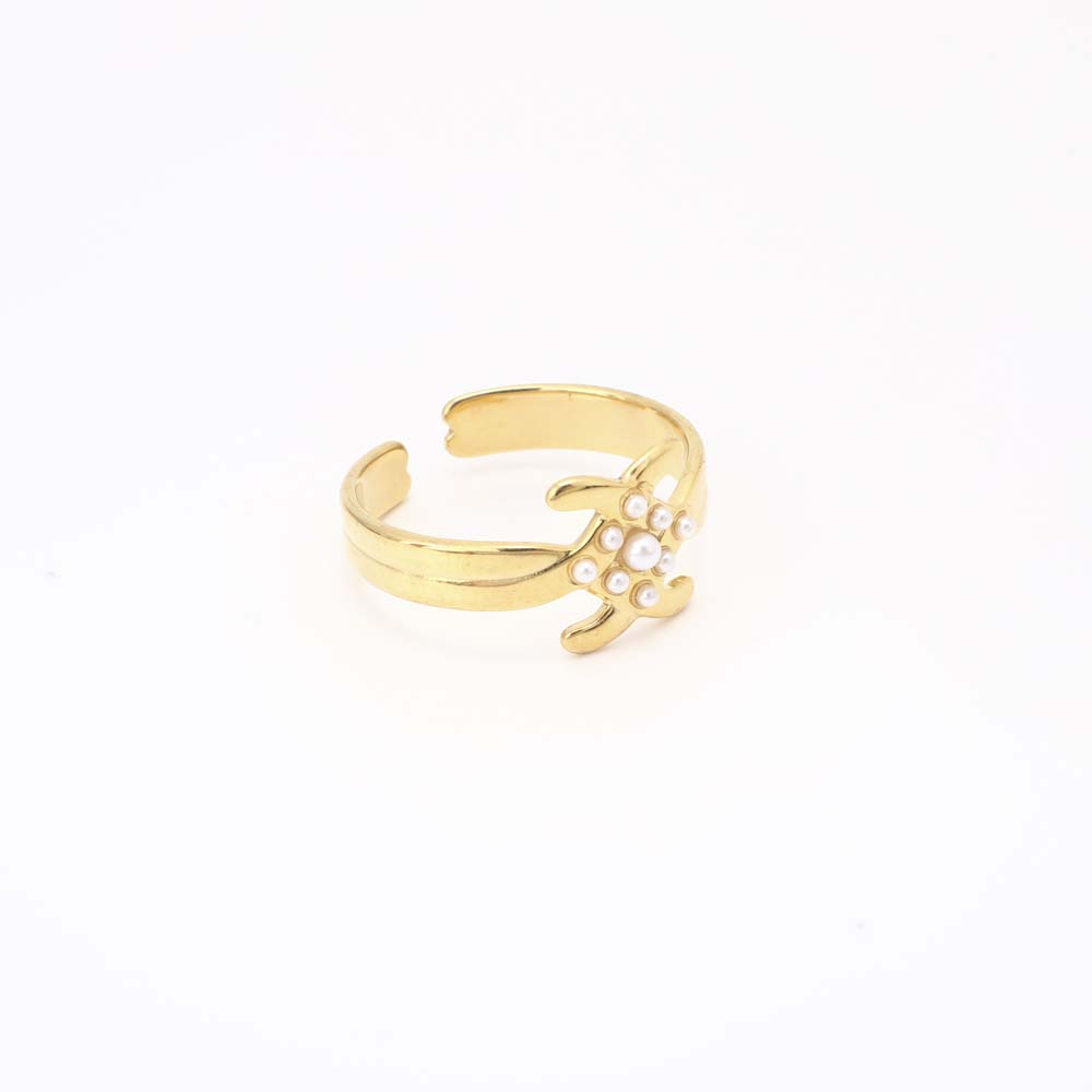 Bague en acier inoxydable, Acier inoxydable 304, avec perle de plastique, bijoux de mode & pour femme, doré, Diamètre intérieur:Environ 18mm, Vendu par PC