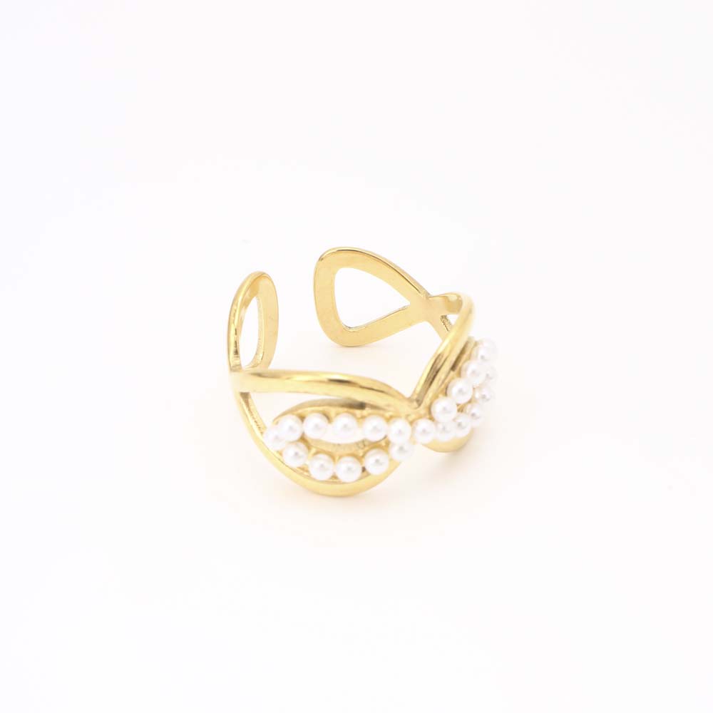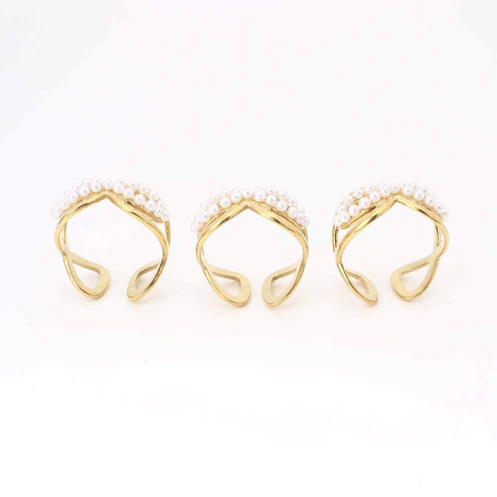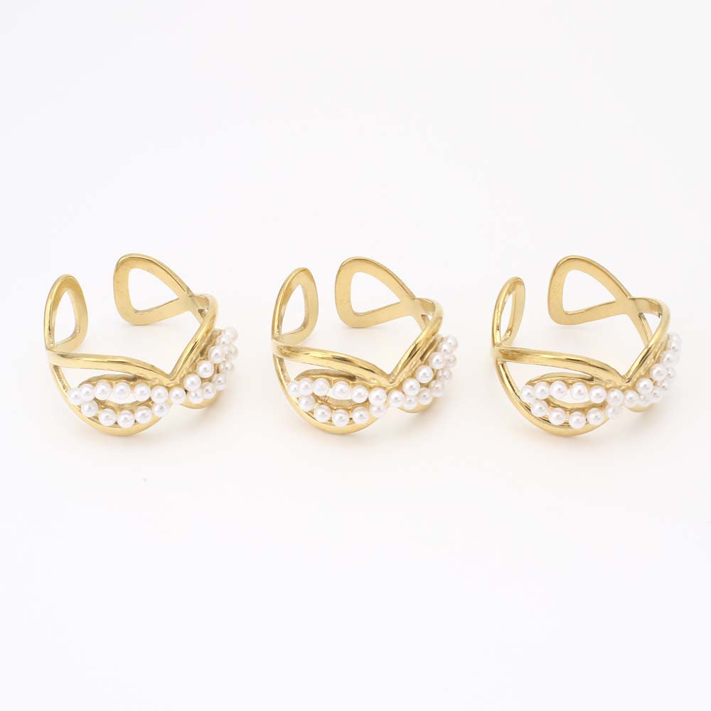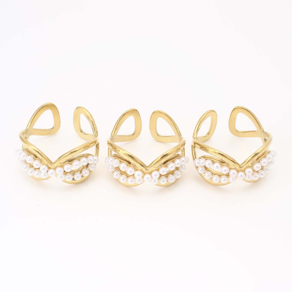 Bague en acier inoxydable, Acier inoxydable 304, avec perle de plastique, bijoux de mode & pour femme, doré, Diamètre intérieur:Environ 18mm, Vendu par PC