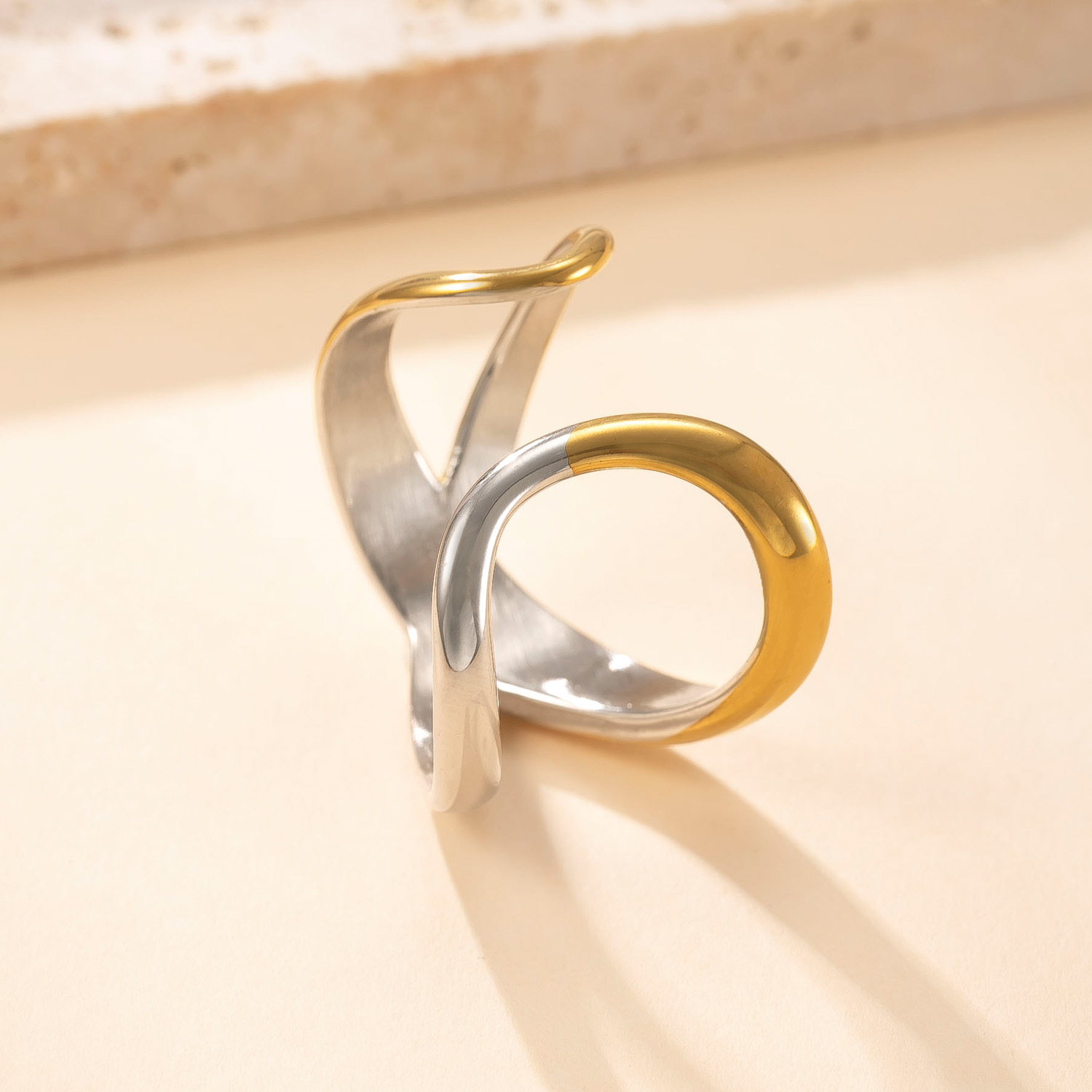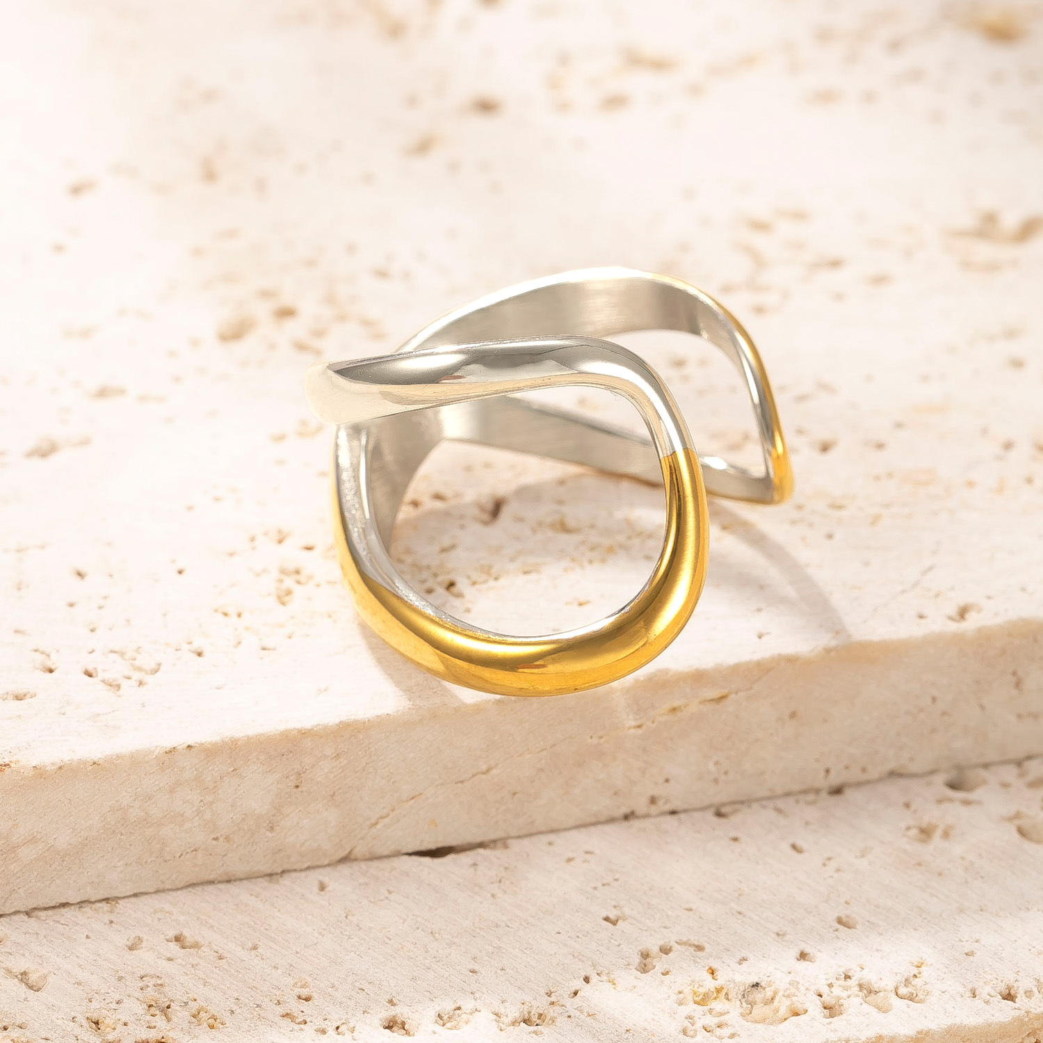 Bague en acier inoxydable, Acier inoxydable 304, Placage, pour femme & deux tons & creux, Vendu par PC