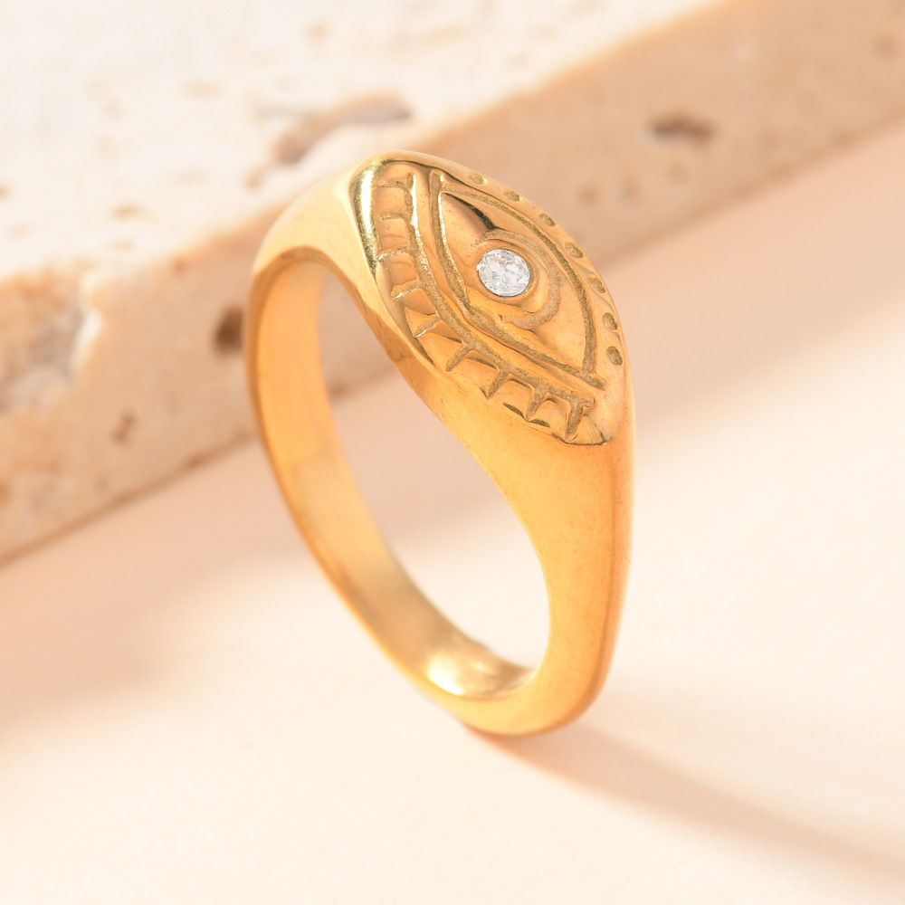 Bague en acier inoxydable , pour femme & avec strass, doré, 4mm îte, Vendu par boîte