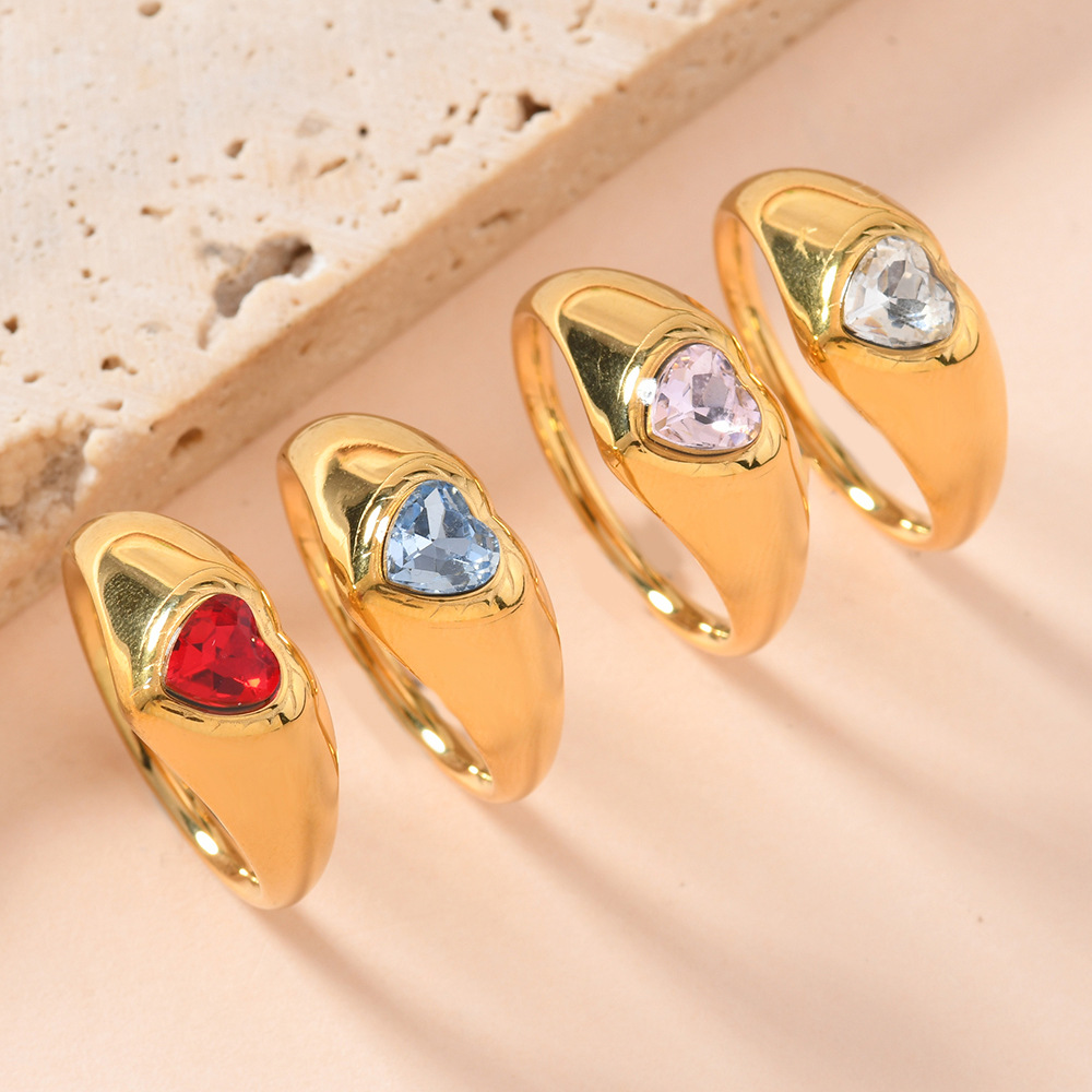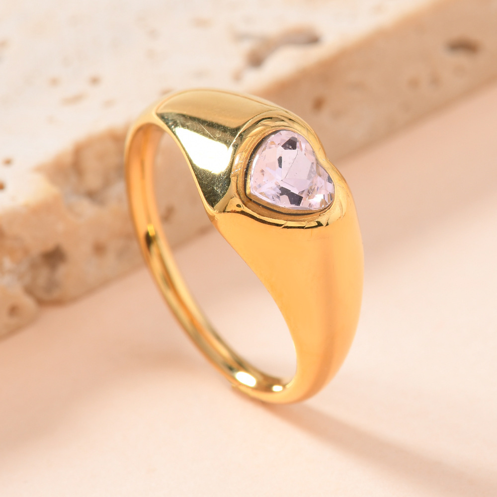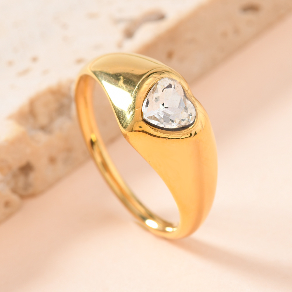 Bague en acier inoxydable , pour femme & avec strass, doré, 4mm îte, Vendu par boîte