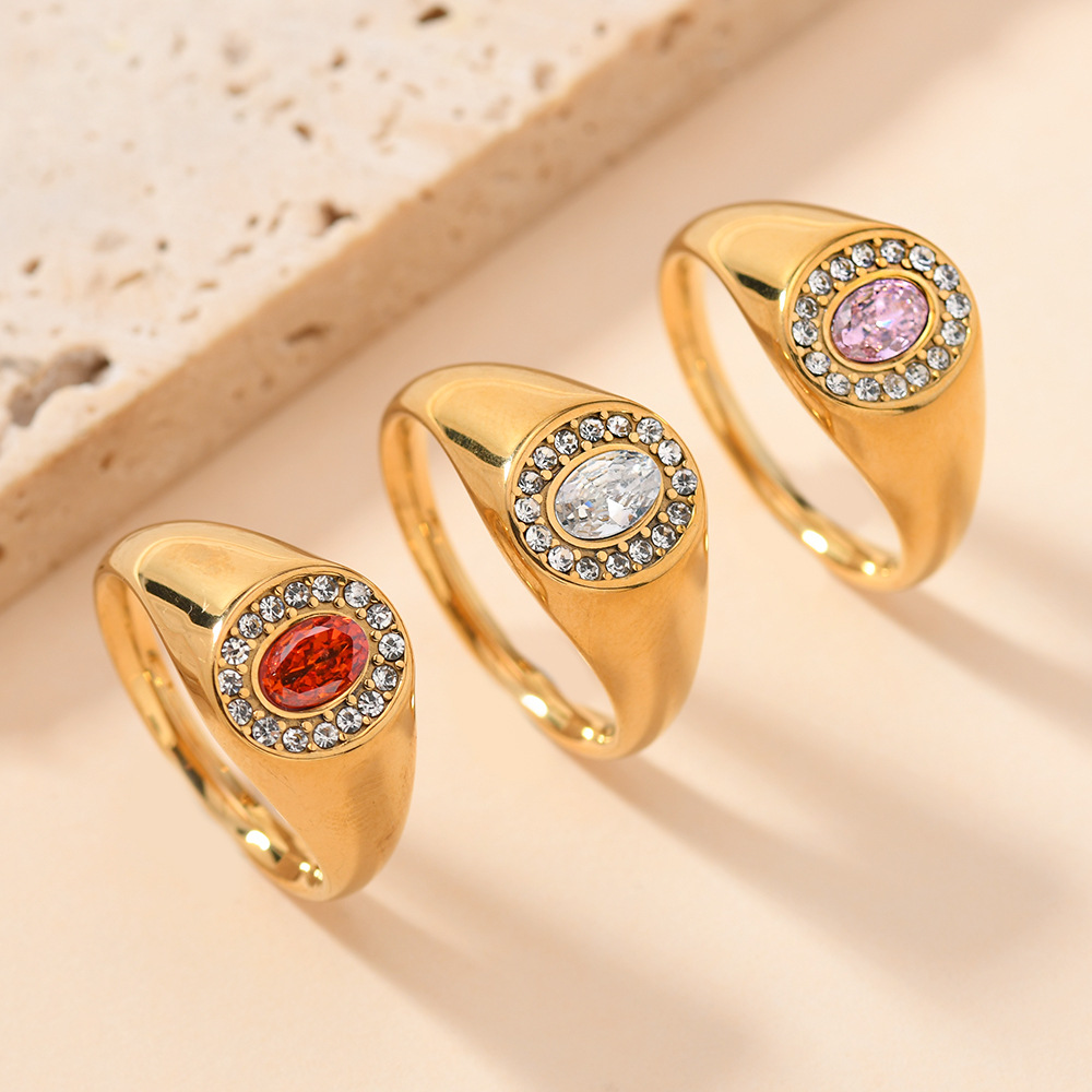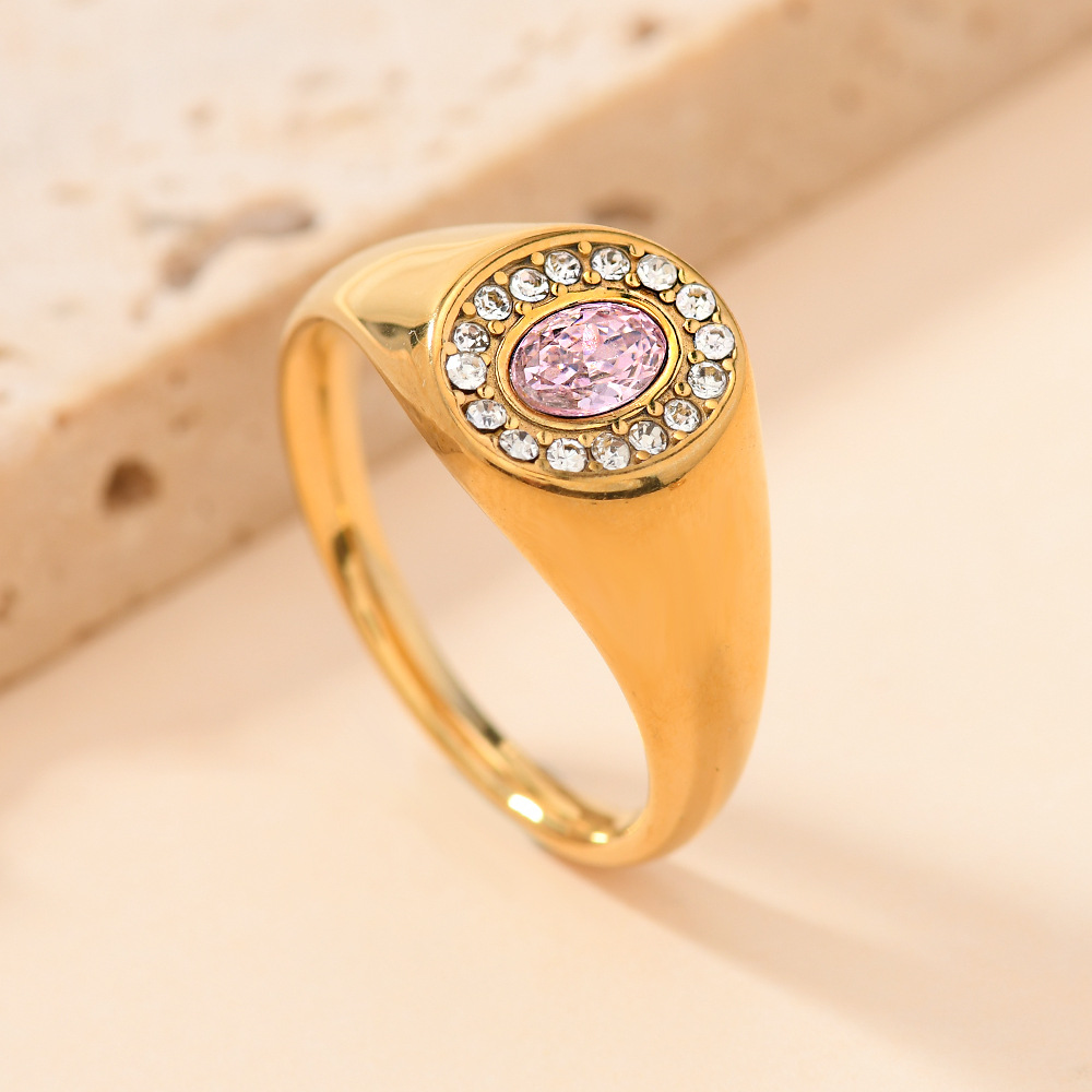 Bague en acier inoxydable , Acier inoxydable 304, avec zircon cubique, Placage de couleur d'or, unisexe & normes différentes pour le choix & avec strass, plus de couleurs à choisir, Vendu par PC