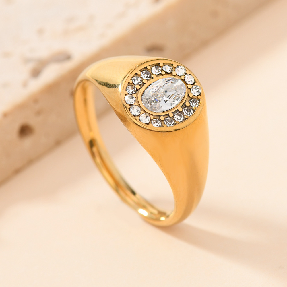 Bague en acier inoxydable , pour femme & avec strass, doré, 4mm îte, Vendu par boîte