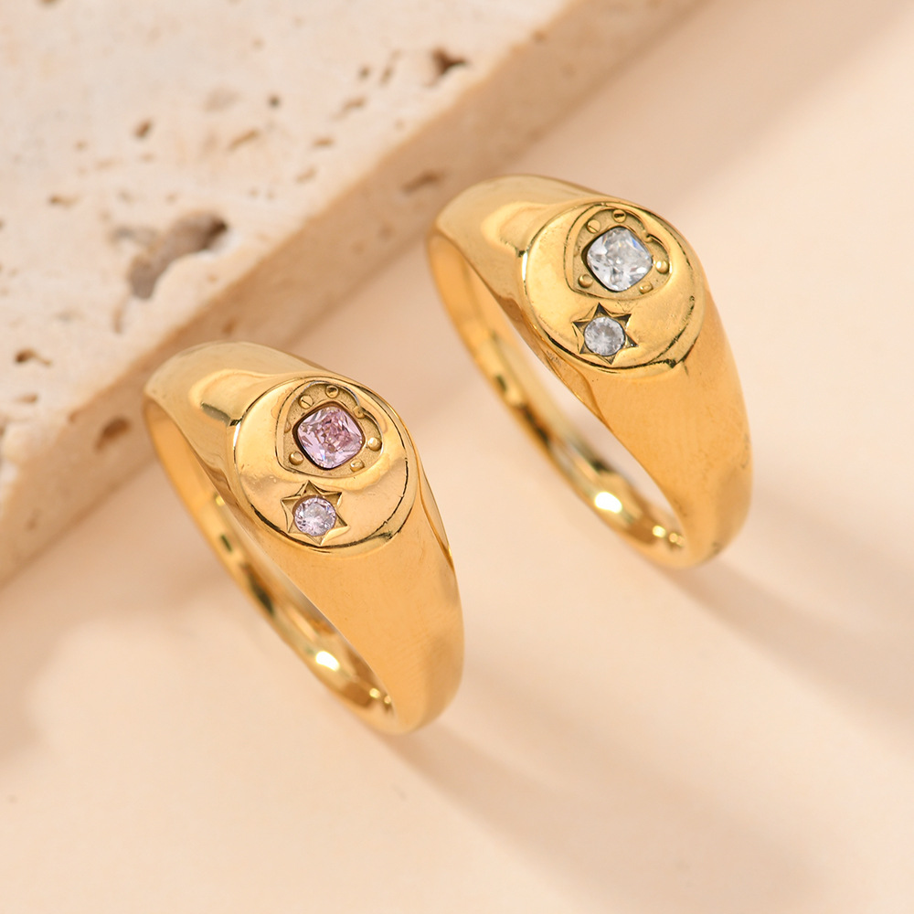 Bague en acier inoxydable , pour femme & avec strass, doré, 4mm îte, Vendu par boîte