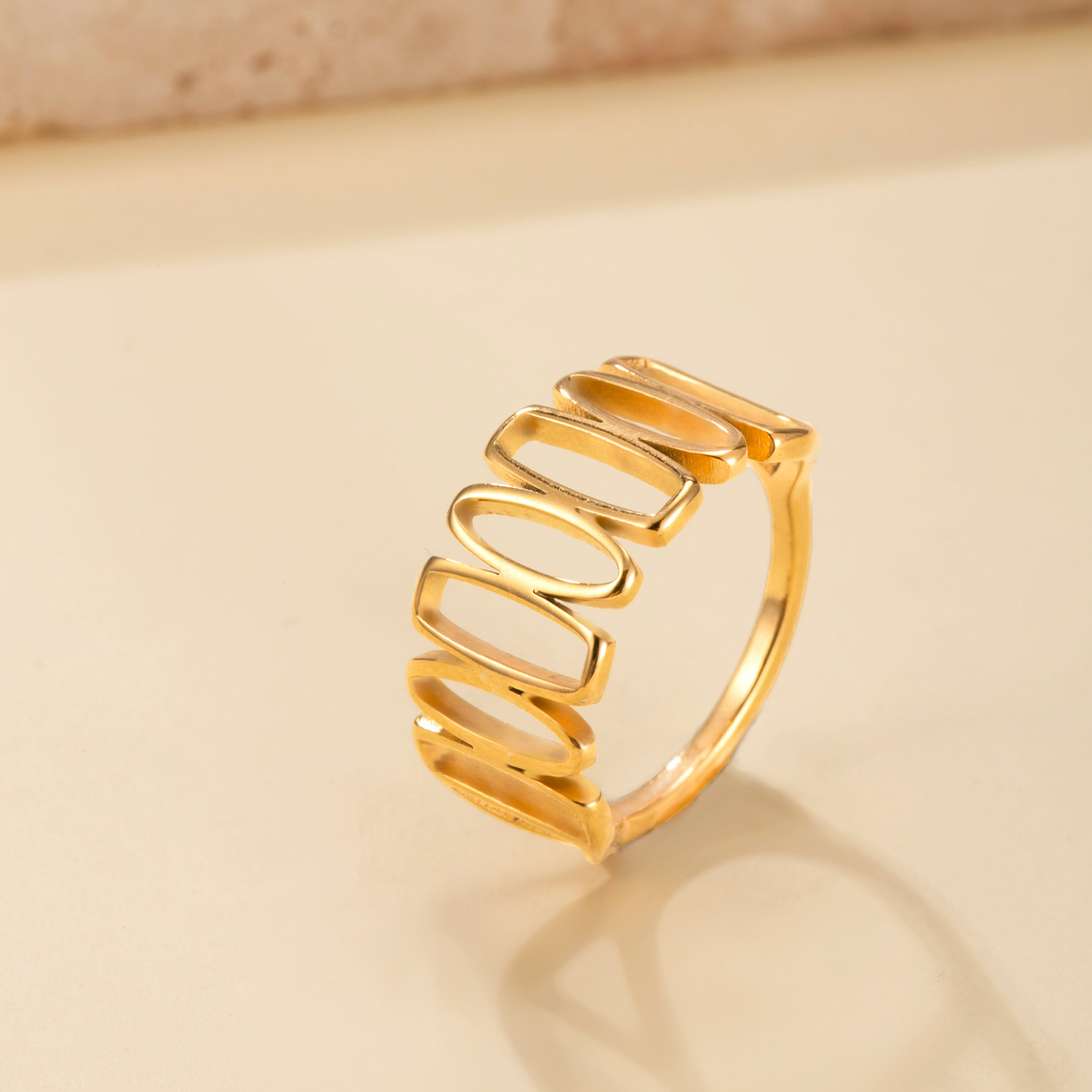 Bague en acier inoxydable, Acier inoxydable 304, Placage, normes différentes pour le choix & pour femme & creux, doré, Vendu par PC