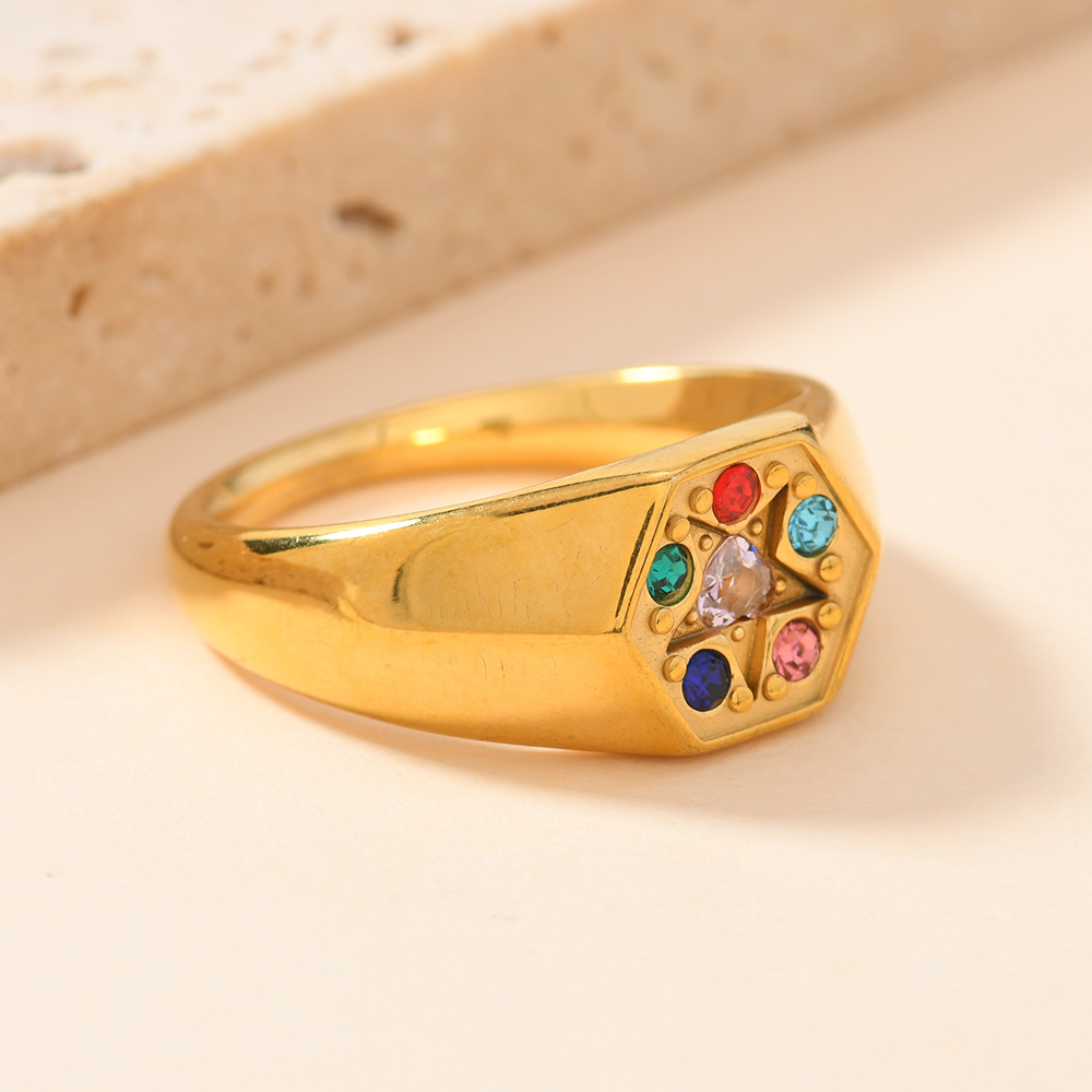 Bague en acier inoxydable , pour femme & avec strass, doré, 4mm îte, Vendu par boîte