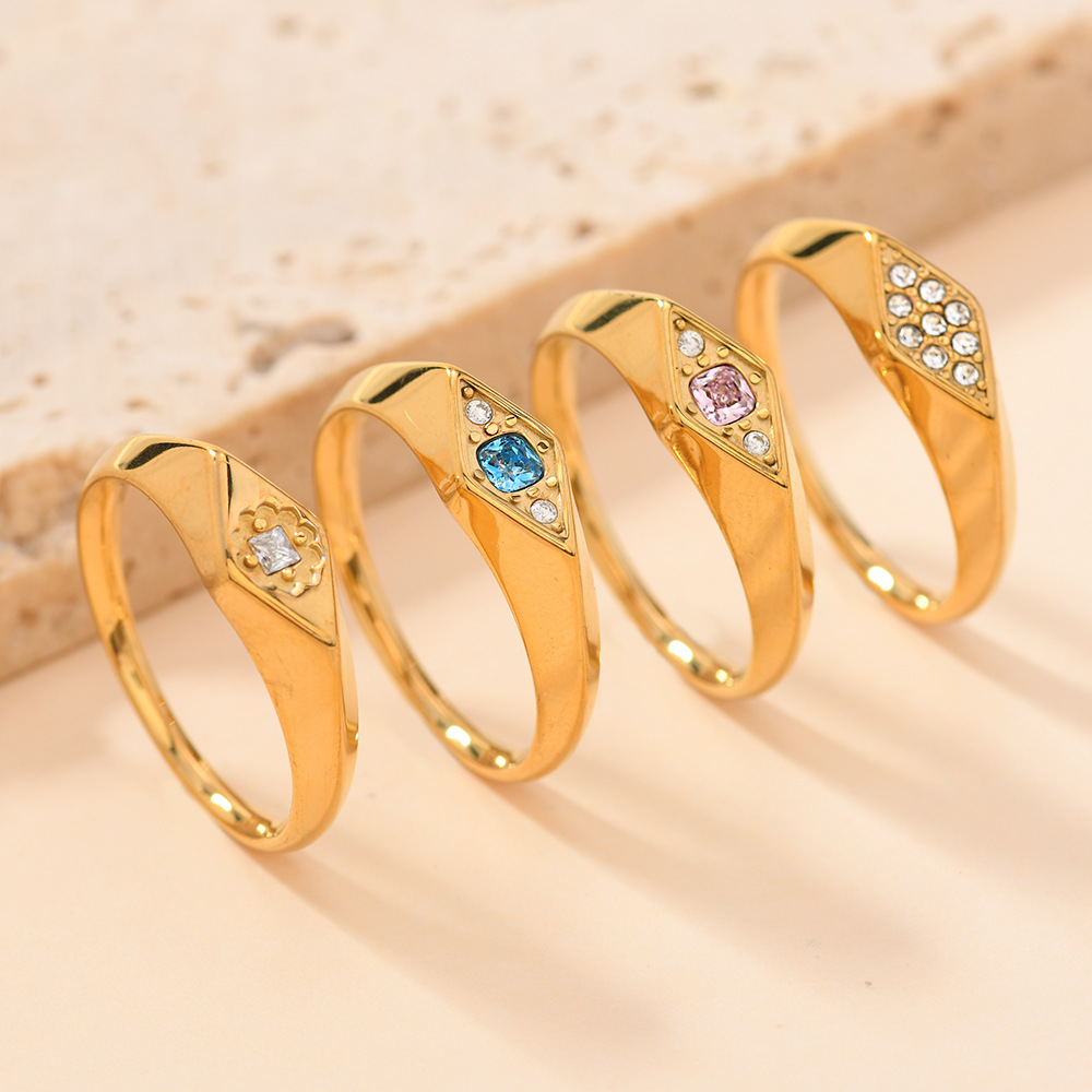 Bague en acier inoxydable , pour femme & avec strass, doré, 4mm îte, Vendu par boîte