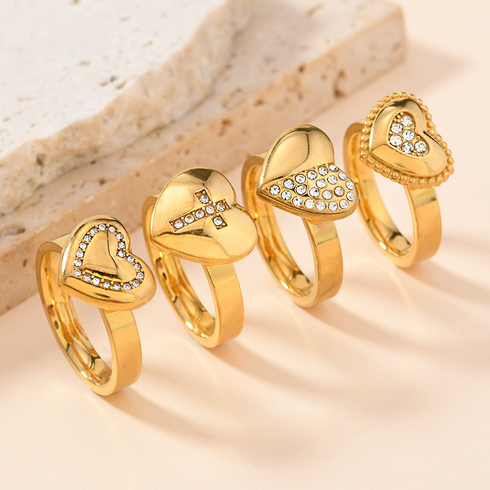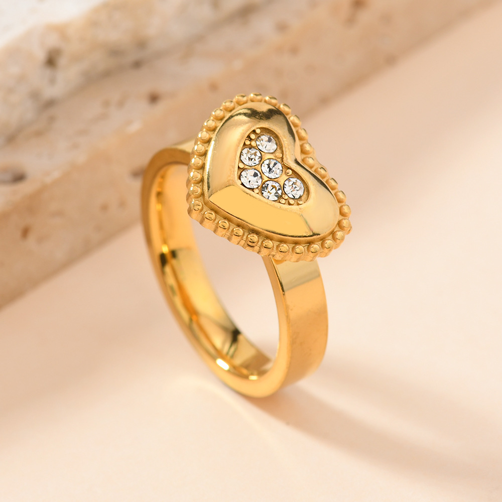 Bague en acier inoxydable , pour femme & avec strass, doré, 4mm îte, Vendu par boîte