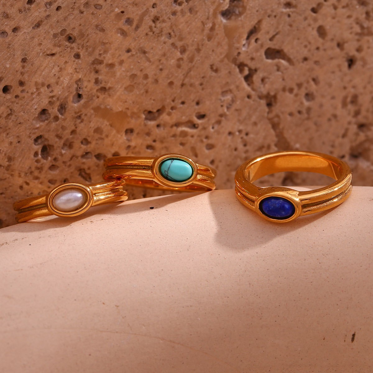 Four Colorful Natural Stone Ring-Gold-No. 8