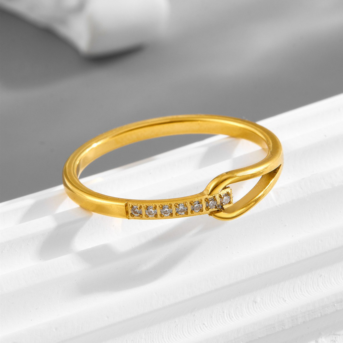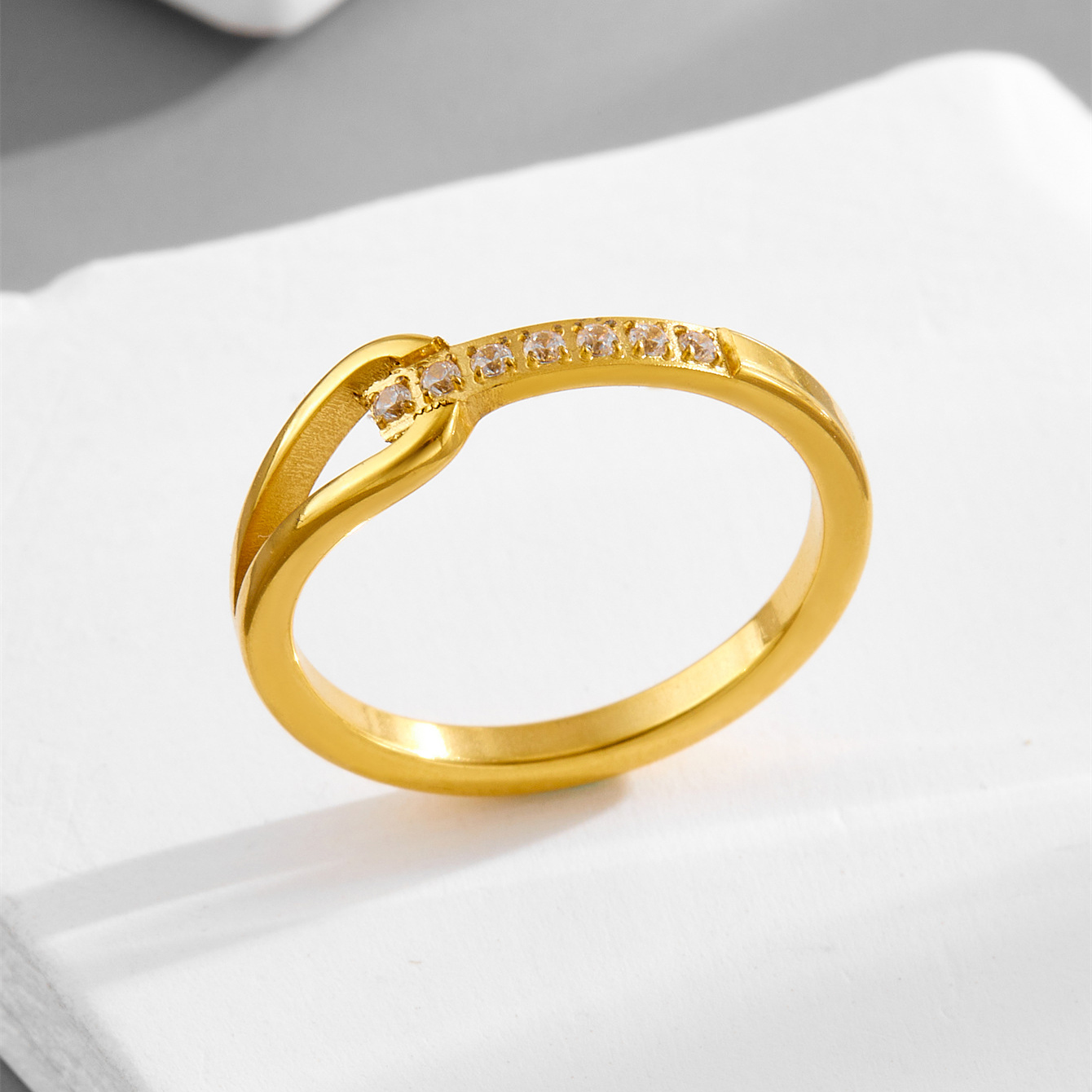 Bague en acier inoxydable , pour femme & avec strass, doré, 4mm îte, Vendu par boîte