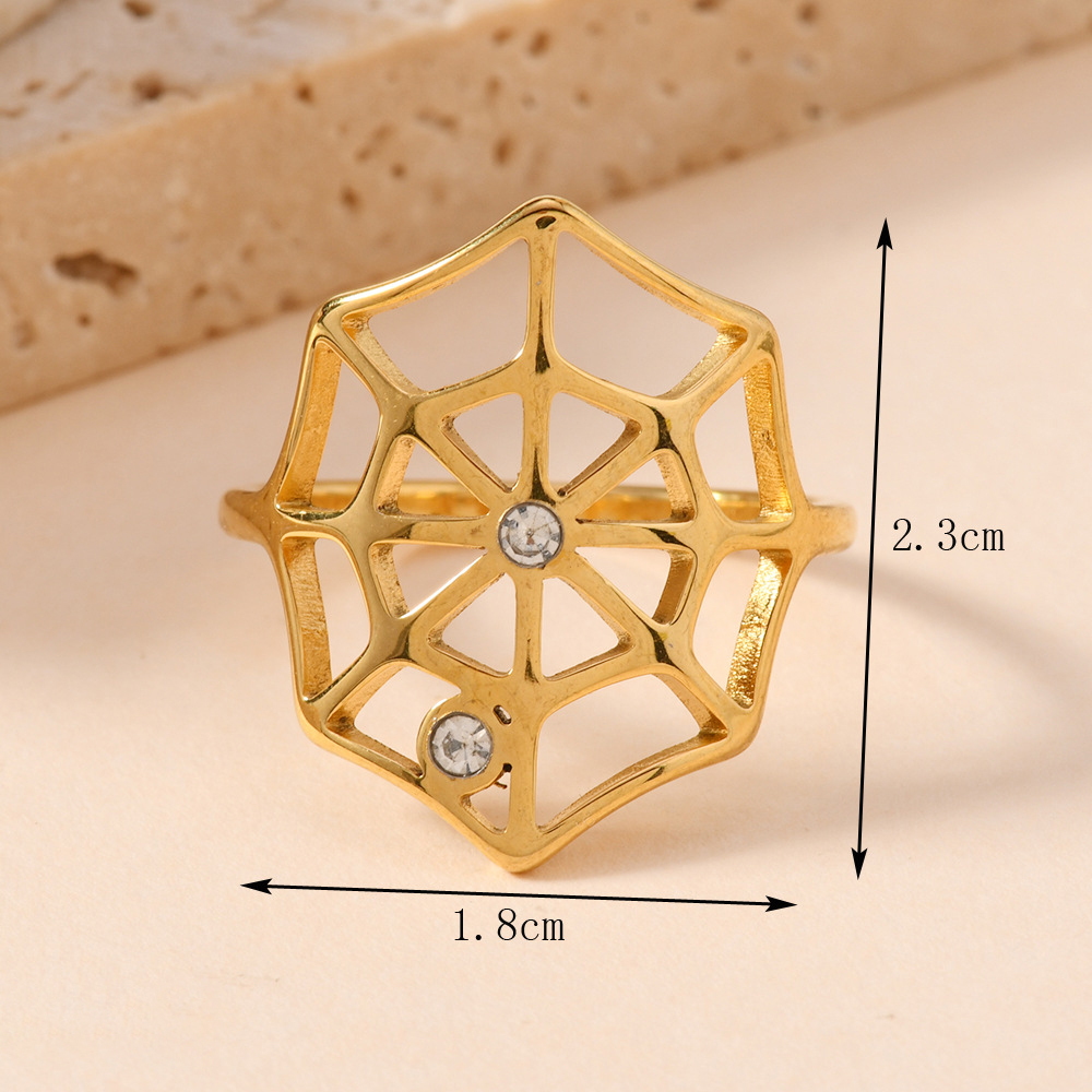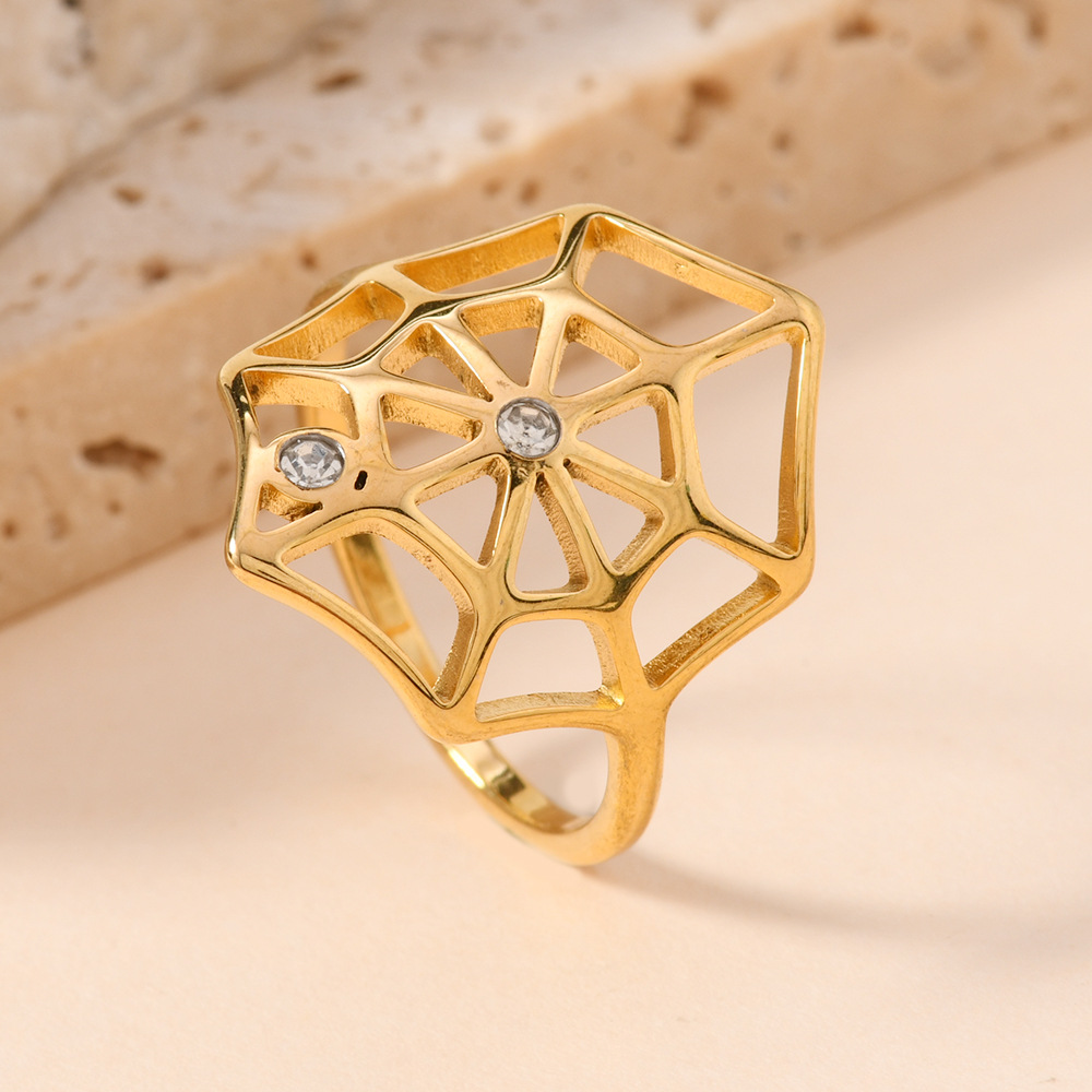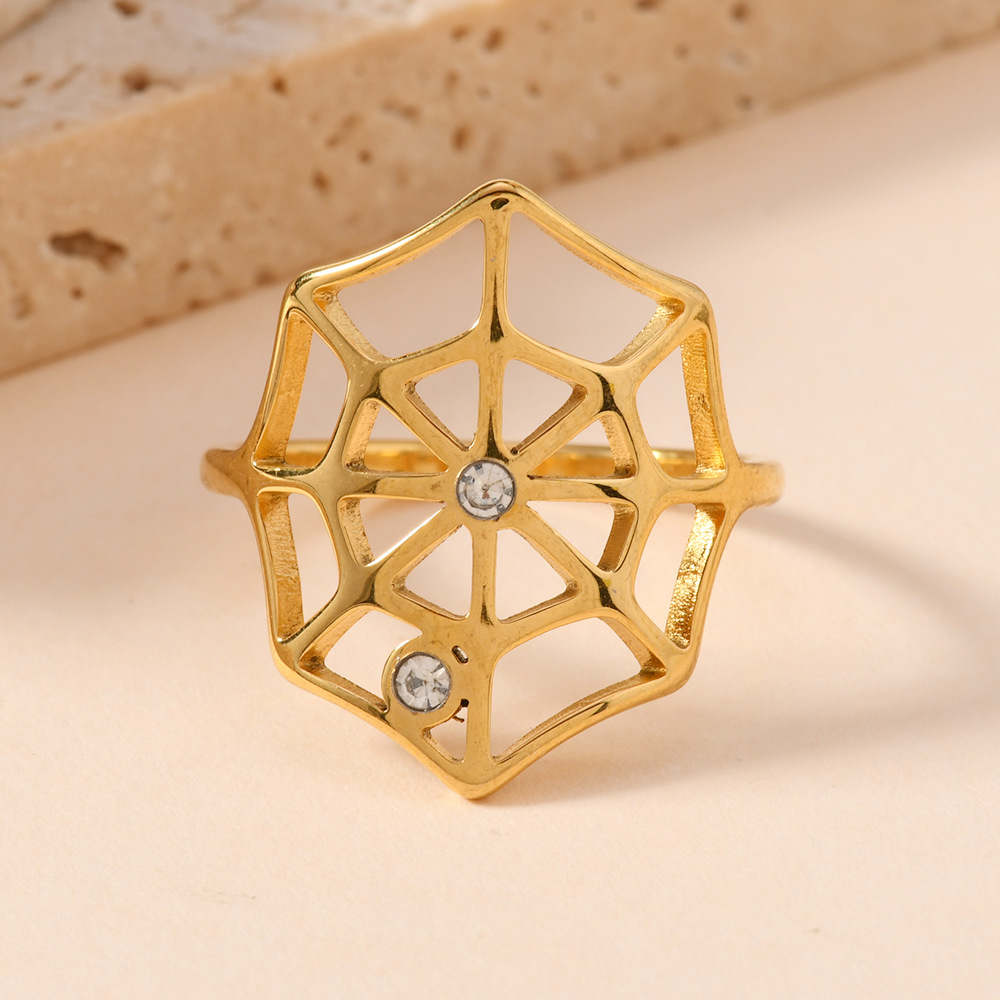 Bague en acier inoxydable , Acier inoxydable 304, toile d'araignée, Placage, unisexe & avec strass & creux, doré, Vendu par PC