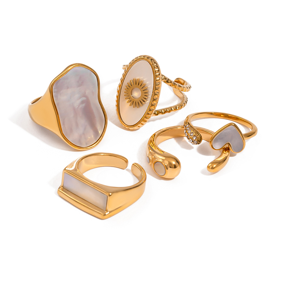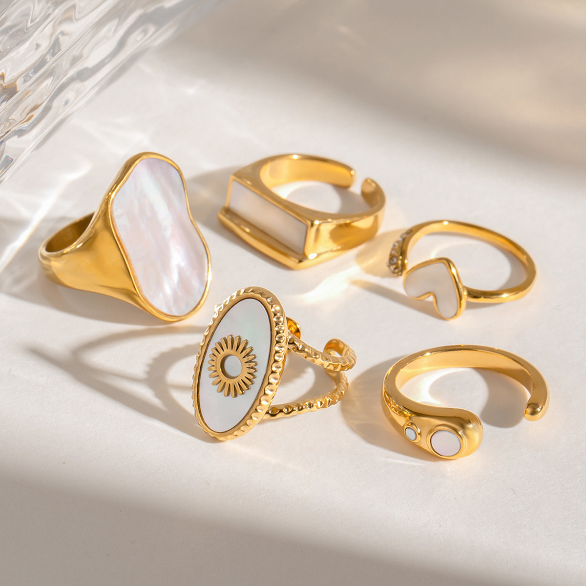 Bague en acier inoxydable, Acier inoxydable 304, avec coquille blanche, Placage, bijoux de mode & styles différents pour le choix & pour femme, doré, Vendu par PC