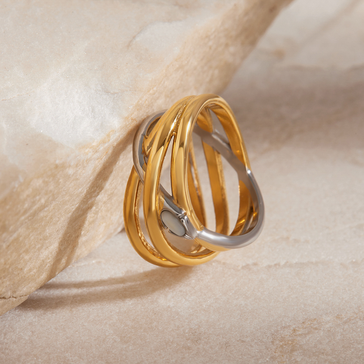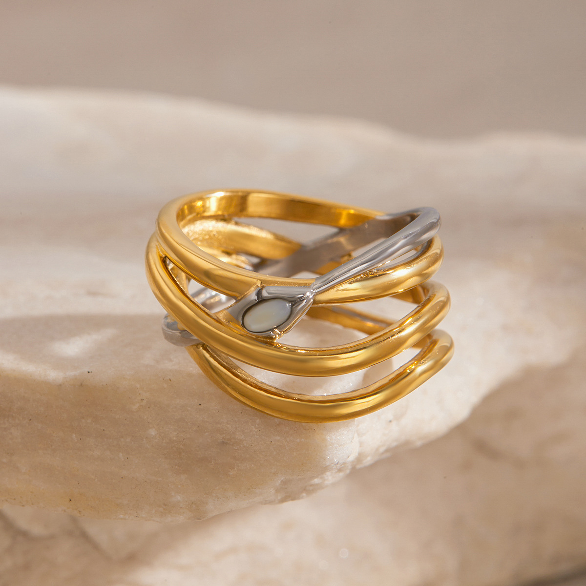 Bague en acier inoxydable, Acier inoxydable 304, avec coquille blanche, Placage, normes différentes pour le choix & pour femme & deux tons & creux, Vendu par PC