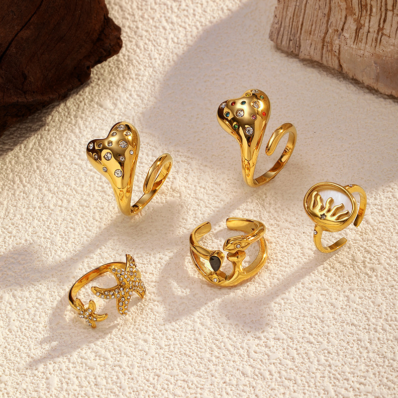 Bague en acier inoxydable , Acier inoxydable 304, Plaqué or 18K, styles différents pour le choix & pour femme & avec strass, Vendu par PC