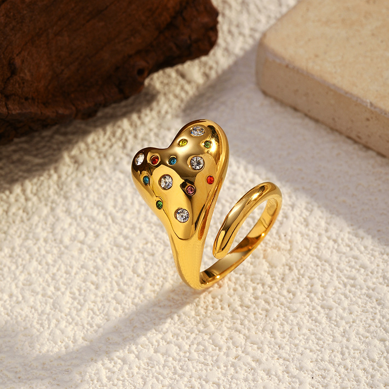 Bague en acier inoxydable , pour femme & avec strass, doré, 4mm îte, Vendu par boîte