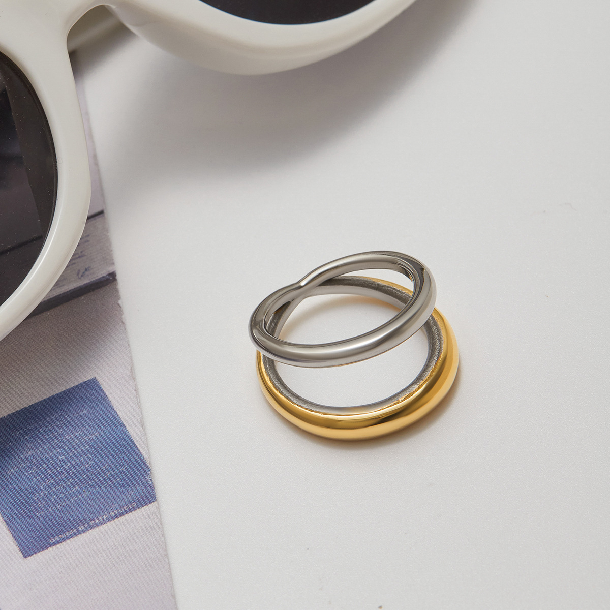 Bague en acier inoxydable, Acier inoxydable 304, Placage, pour femme & deux tons & creux, Vendu par PC
