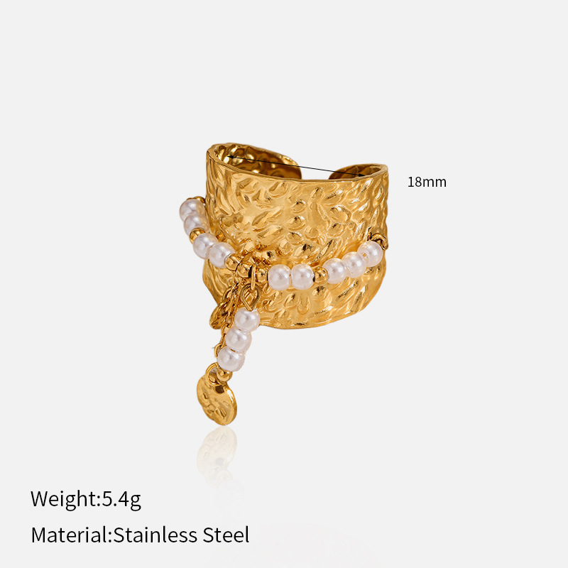 Bague en acier inoxydable, Acier inoxydable 304, avec perle de plastique, Placage, bijoux de mode & styles différents pour le choix & pour femme, doré, Vendu par PC