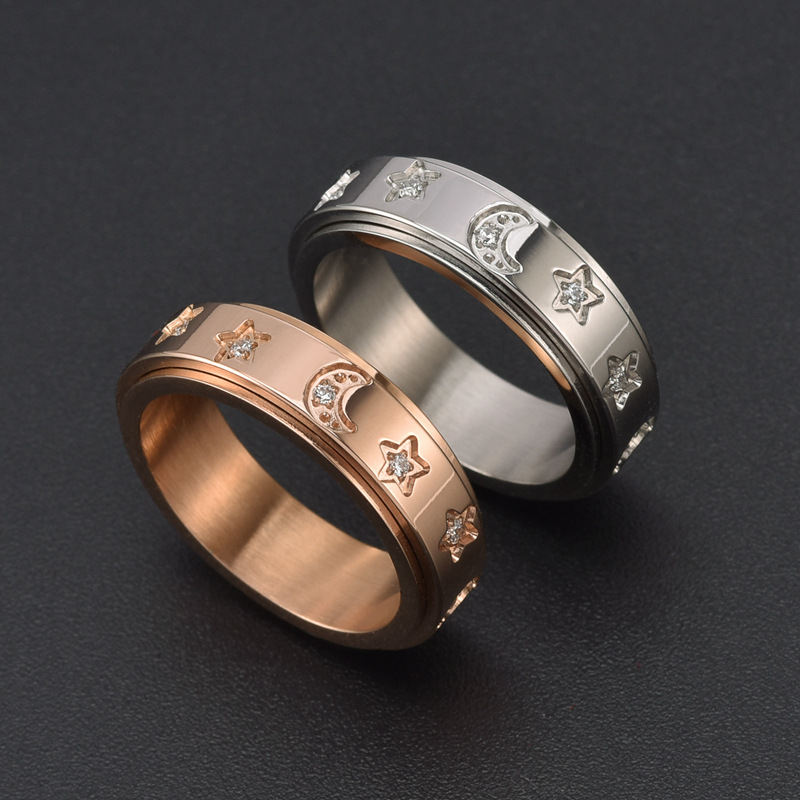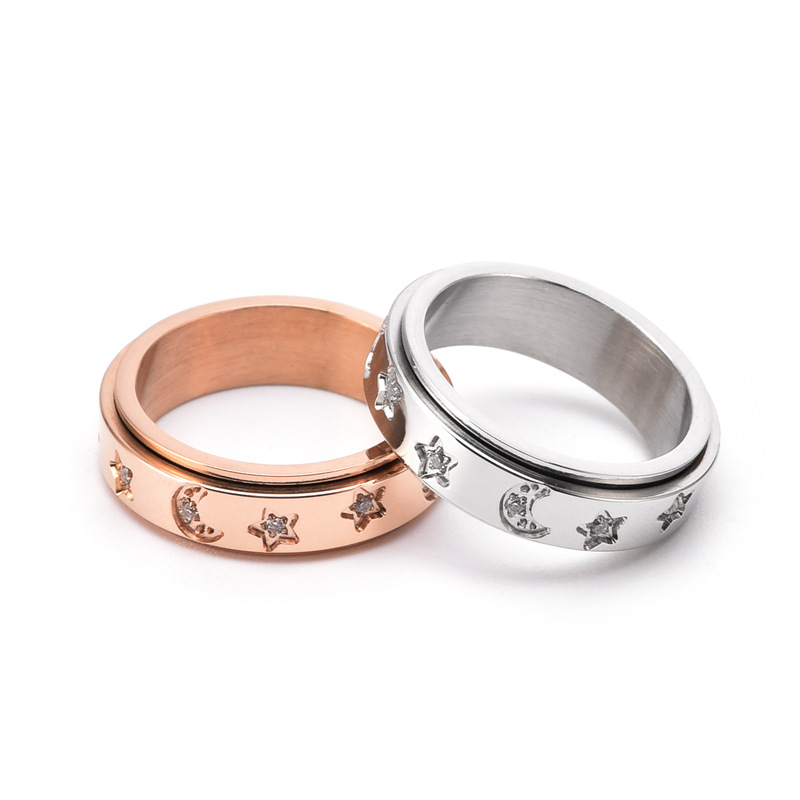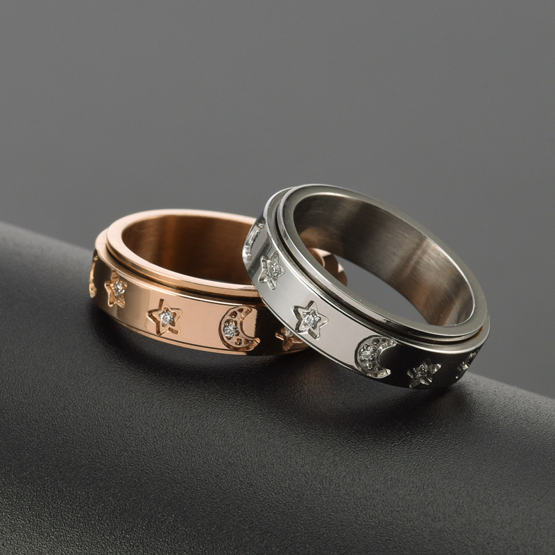 Bague en acier inoxydable , Acier inoxydable 304, Placage, rotatif & normes différentes pour le choix & pour femme & avec strass, plus de couleurs à choisir, Vendu par PC