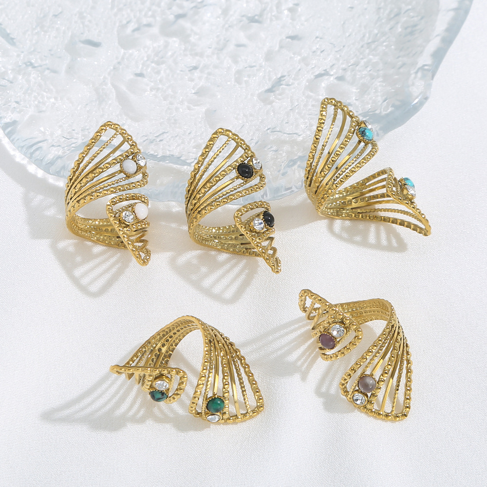 Bague en acier inoxydable , Acier inoxydable 304, avec Pierre naturelle, Placage de couleur d'or, bijoux de mode & avec strass, doré, Vendu par PC