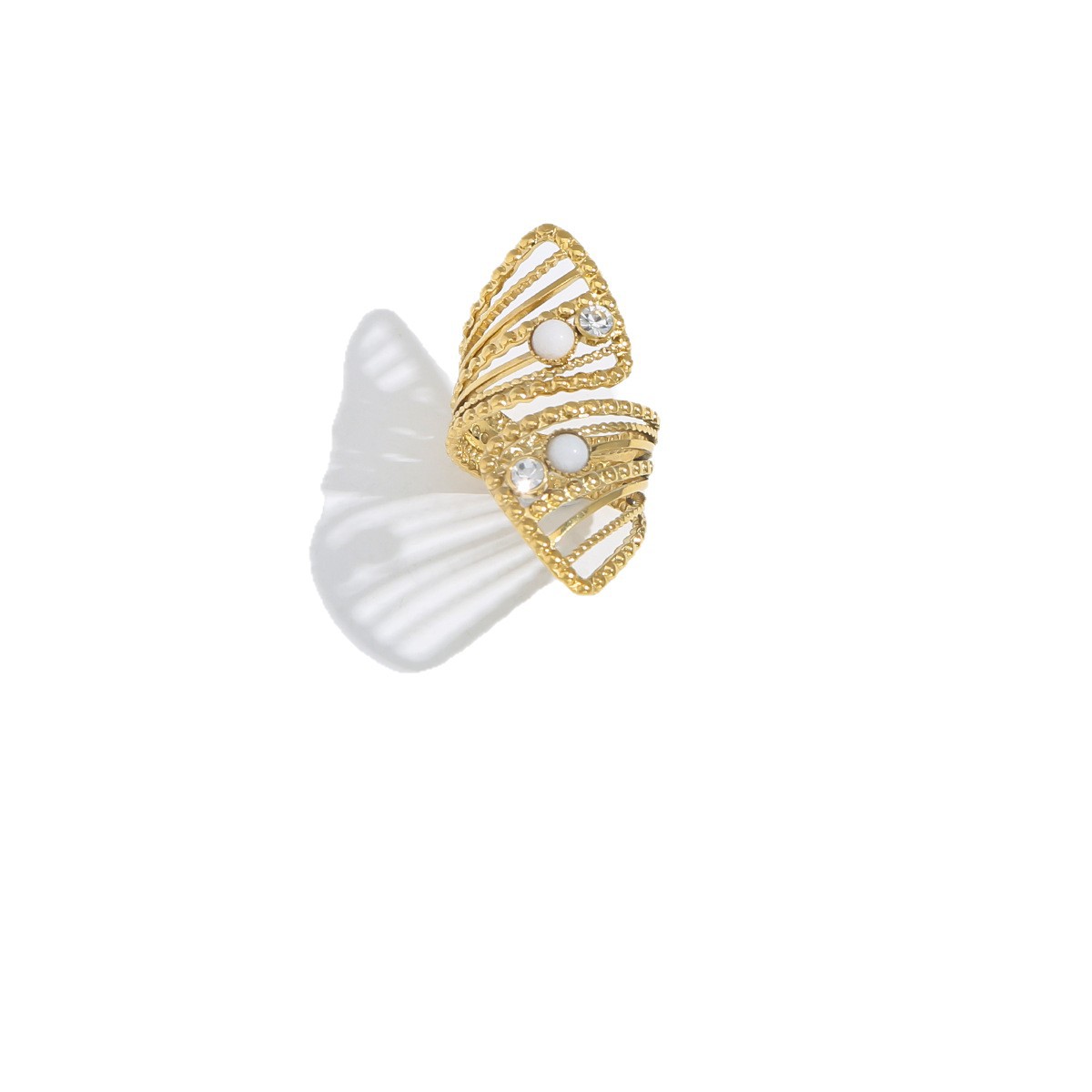 Bague en acier inoxydable , avec argile, avec strass Vendu par PC