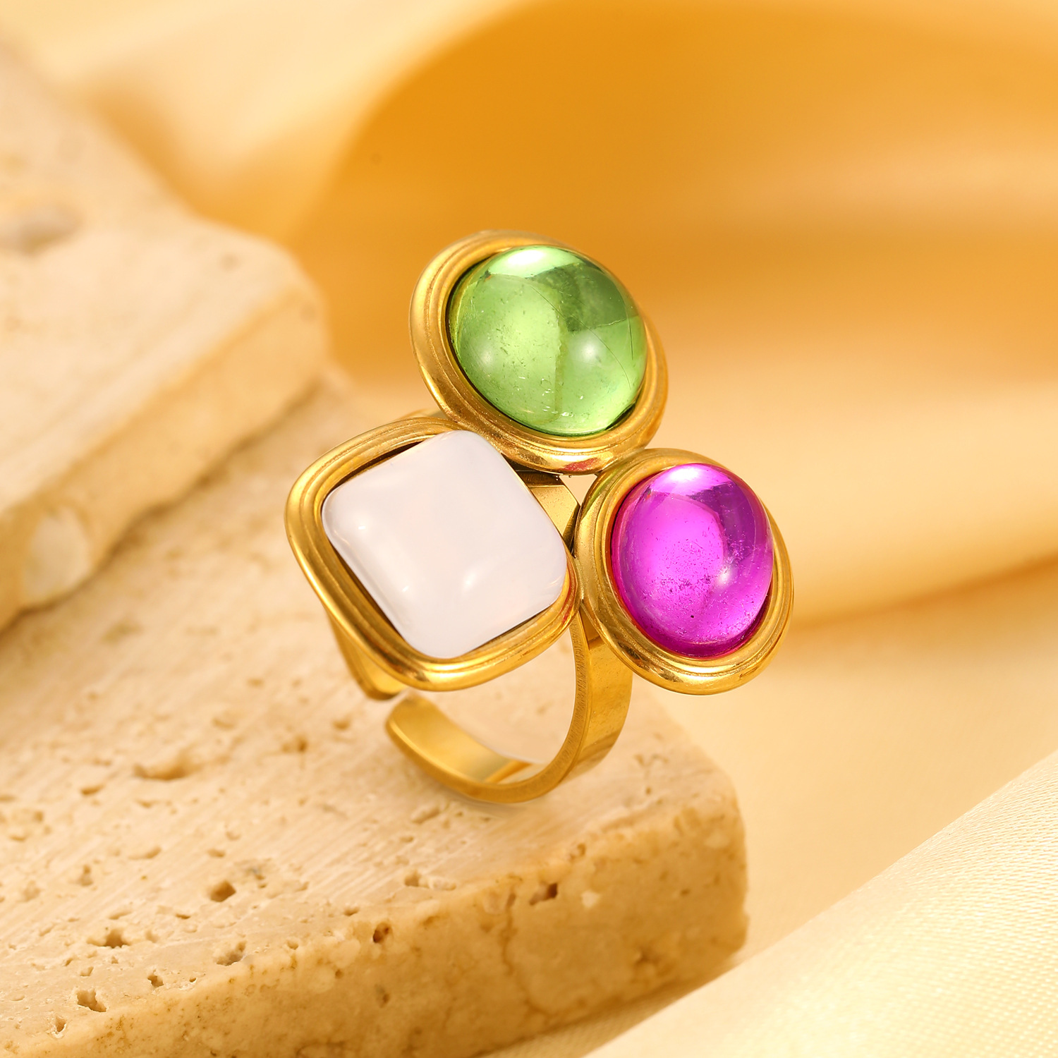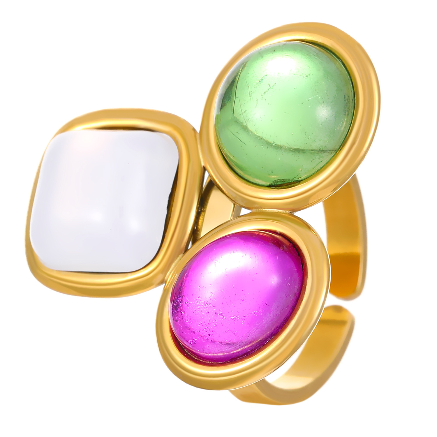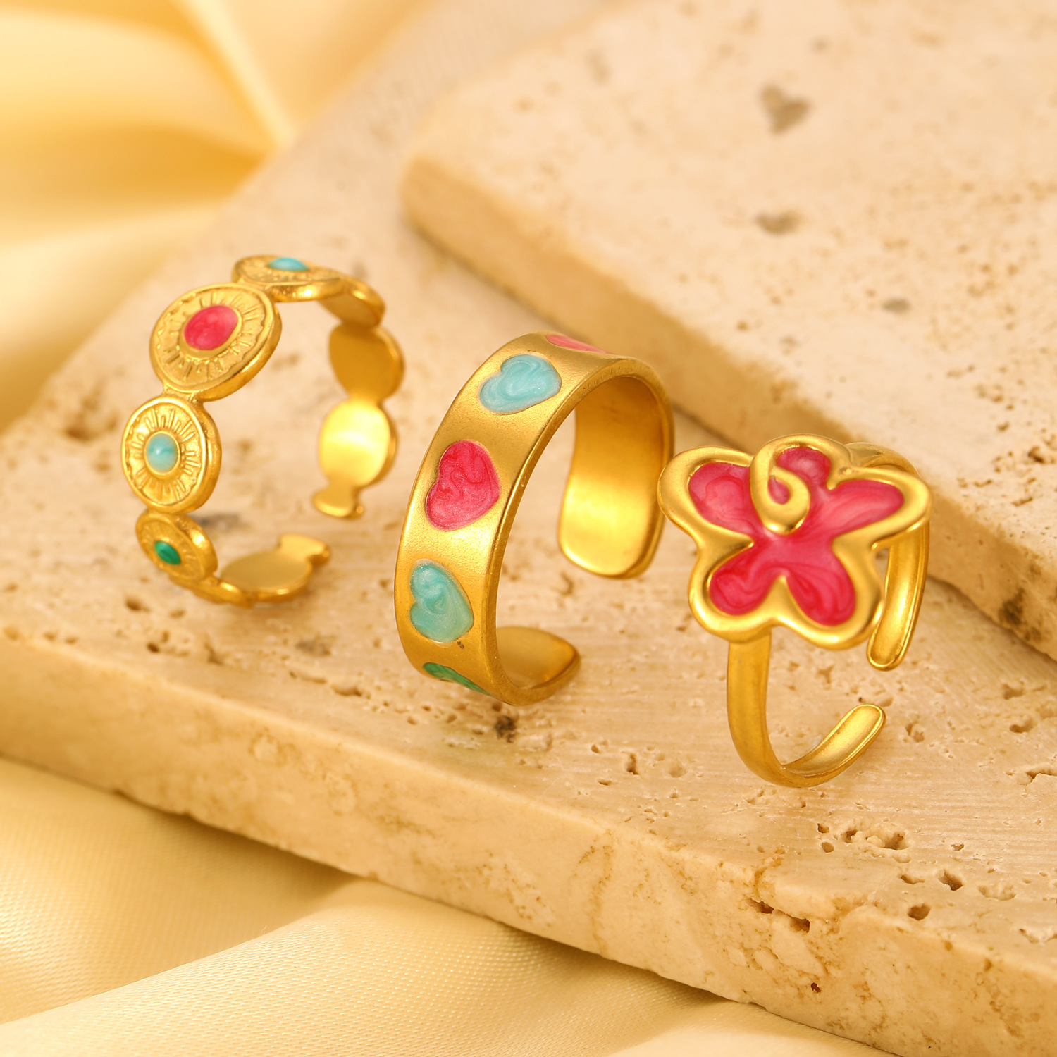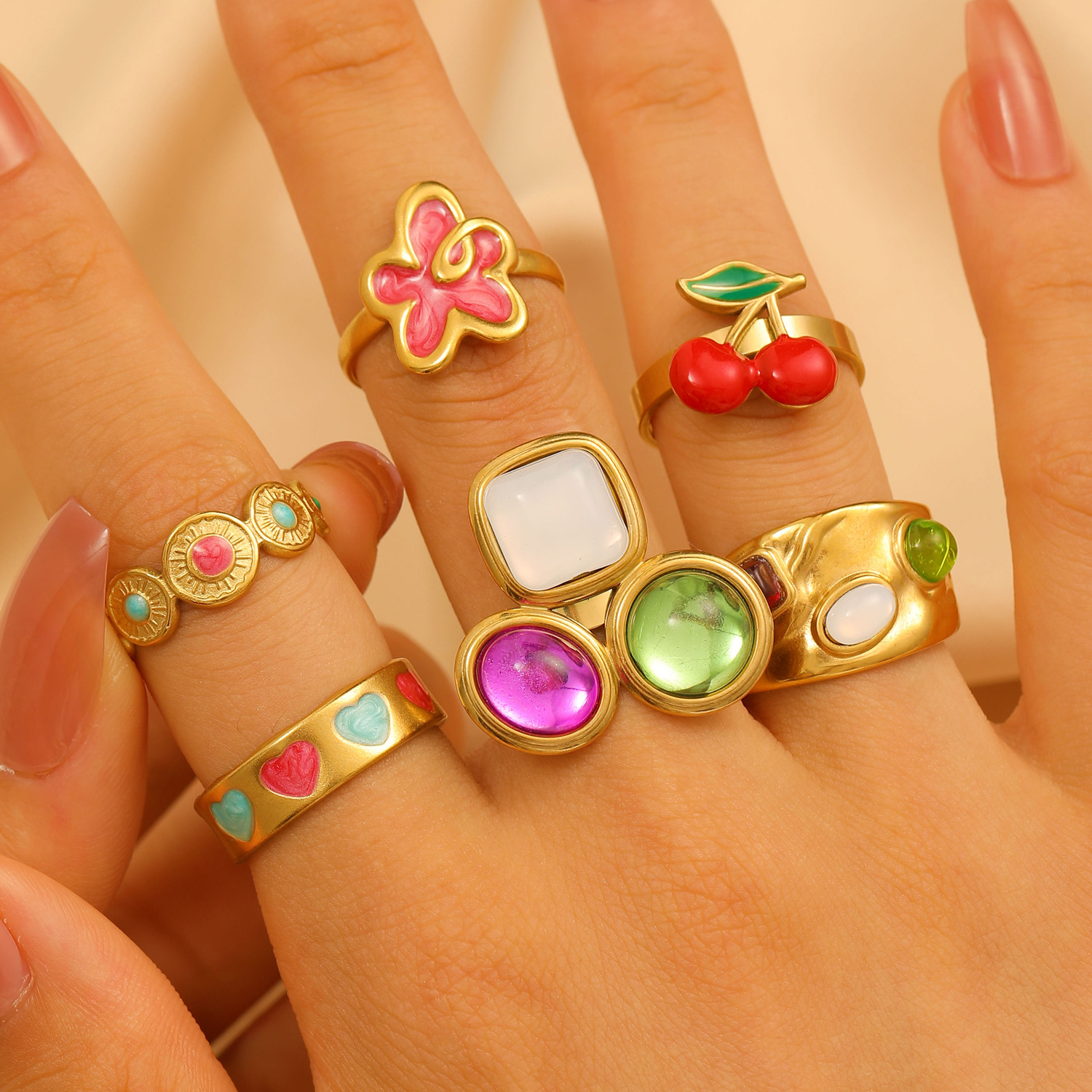 Bague en acier inoxydable, Acier inoxydable 304, avec résine, Placage de couleur d'or, bijoux de mode & émail, plus de couleurs à choisir, Vendu par PC